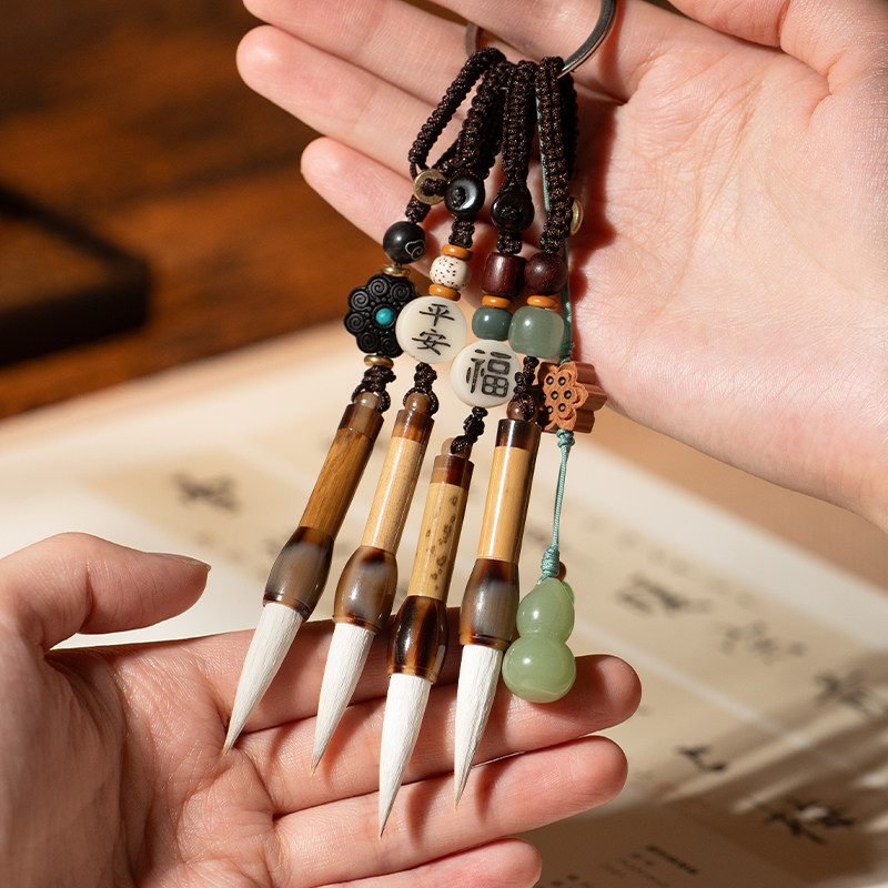 湖笔迷你小毛笔钥匙扣挂件摆件文玩新款可爱中国风文昌笔套装书法专用钥匙圈礼物用品文房四宝湖笔博物馆礼品