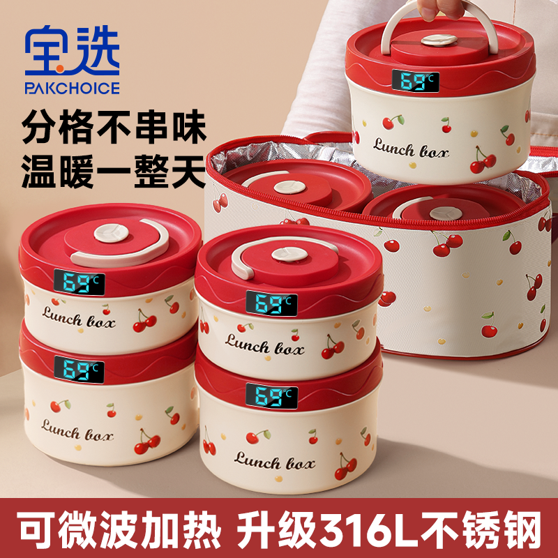 宝选保温饭盒可微波炉加热便当盒上班族2025带饭不锈钢餐盒碗双层