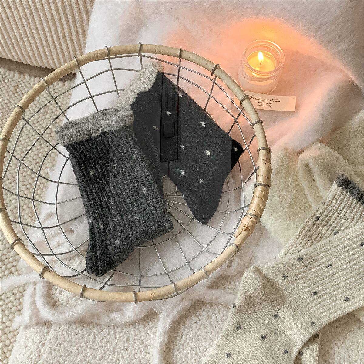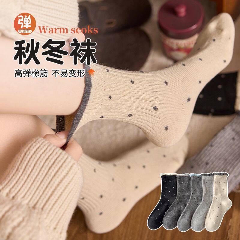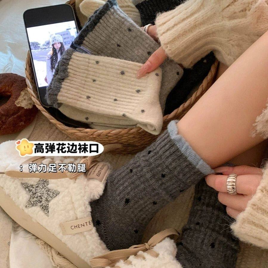 耐尔绵羊毛袜子女秋冬长袜加厚保暖复古百搭中筒袜ins潮堆堆袜
