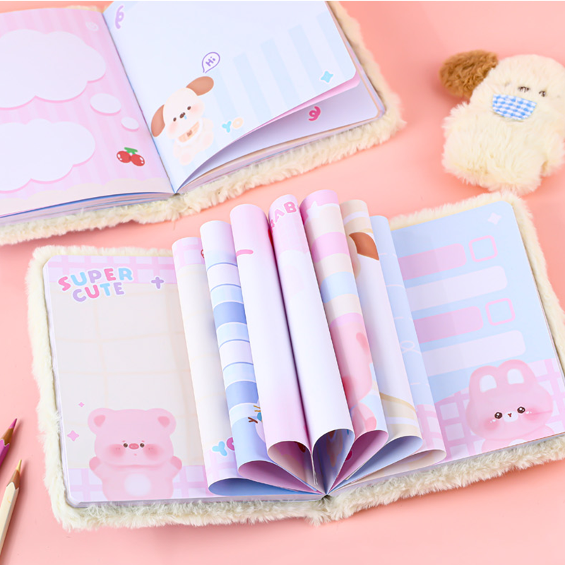 卡通小狗睡觉觉毛绒本笔记本公仔手账本高颜值可爱记事本礼物本子