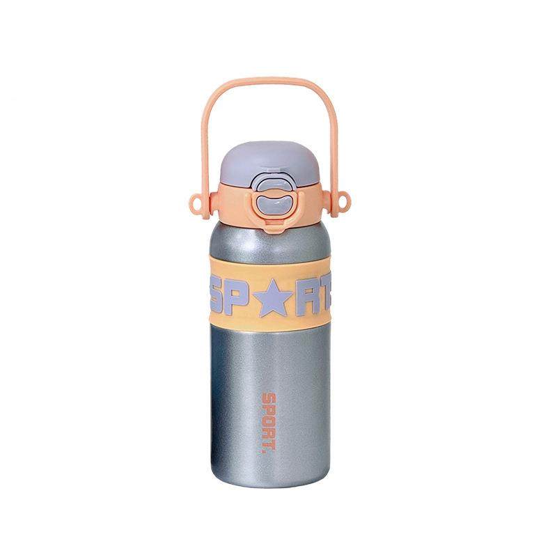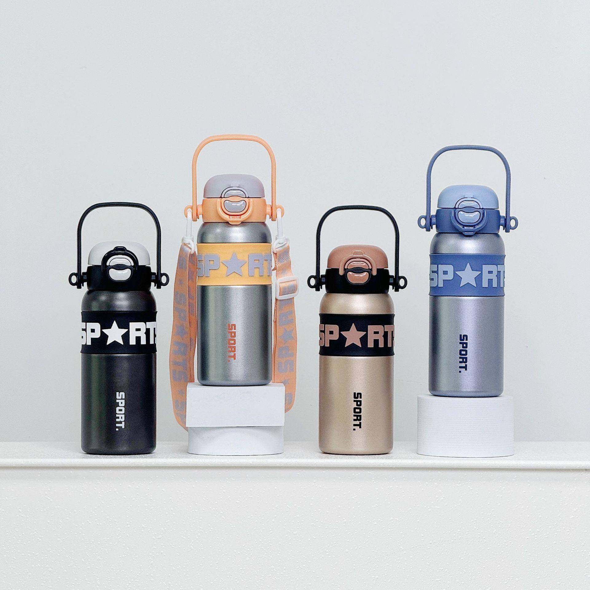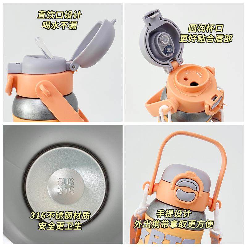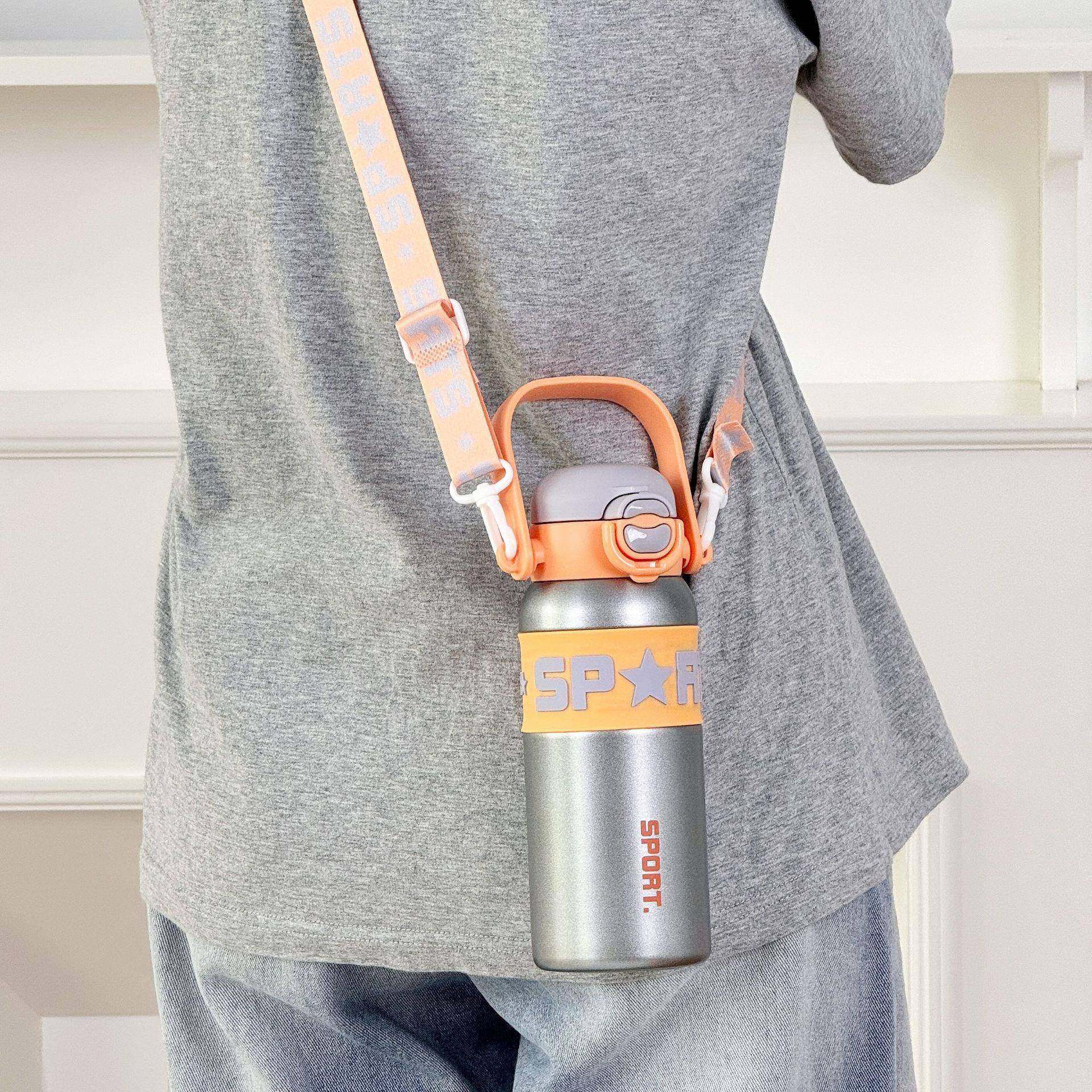 不锈钢双饮弹跳杯2025新款600ml手提保温杯背带户外便携运动水壶