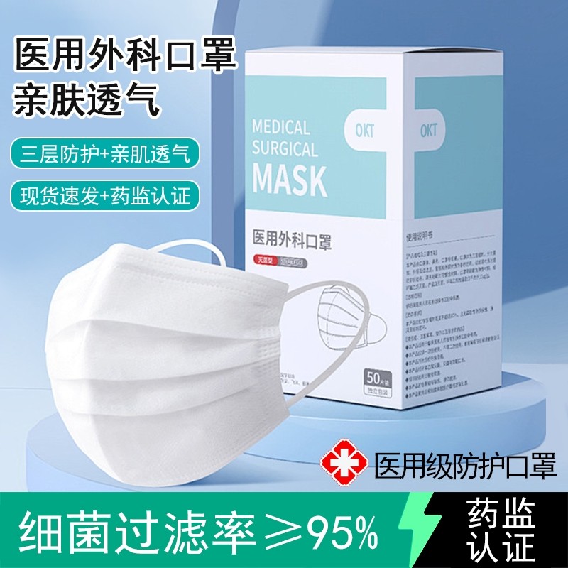 医用外科口罩一次性医疗三层官方正品旗舰店女高颜值透气单独包装