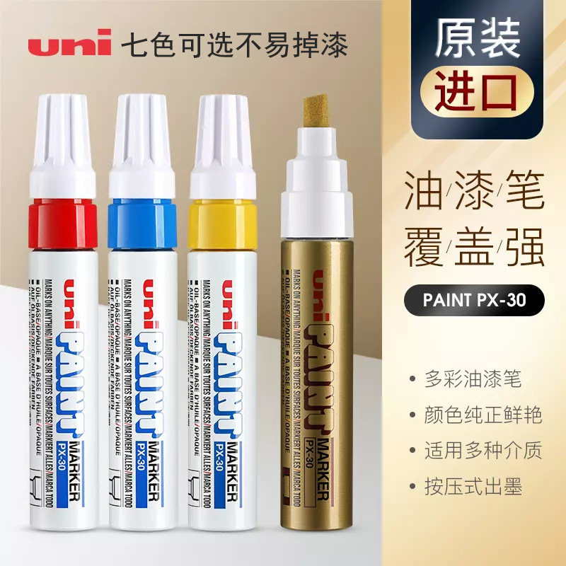 日本三菱(Uni)油漆笔 PX-30 宽补漆笔记号笔4.0-8.5mm不掉漆 斜头粗字油性笔 PX-20/PX-21小头油漆笔旗舰店
