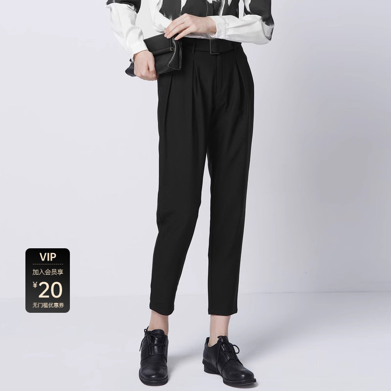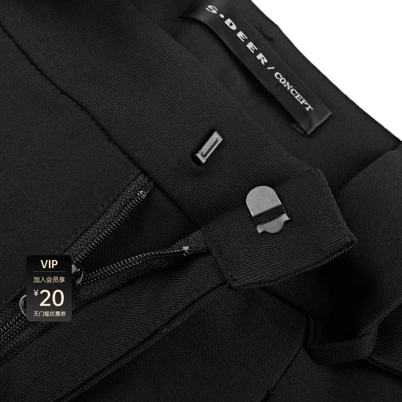 【sdeer奥莱】圣迪奥女装秋休闲系带压褶插袋黑色九分裤S21360812