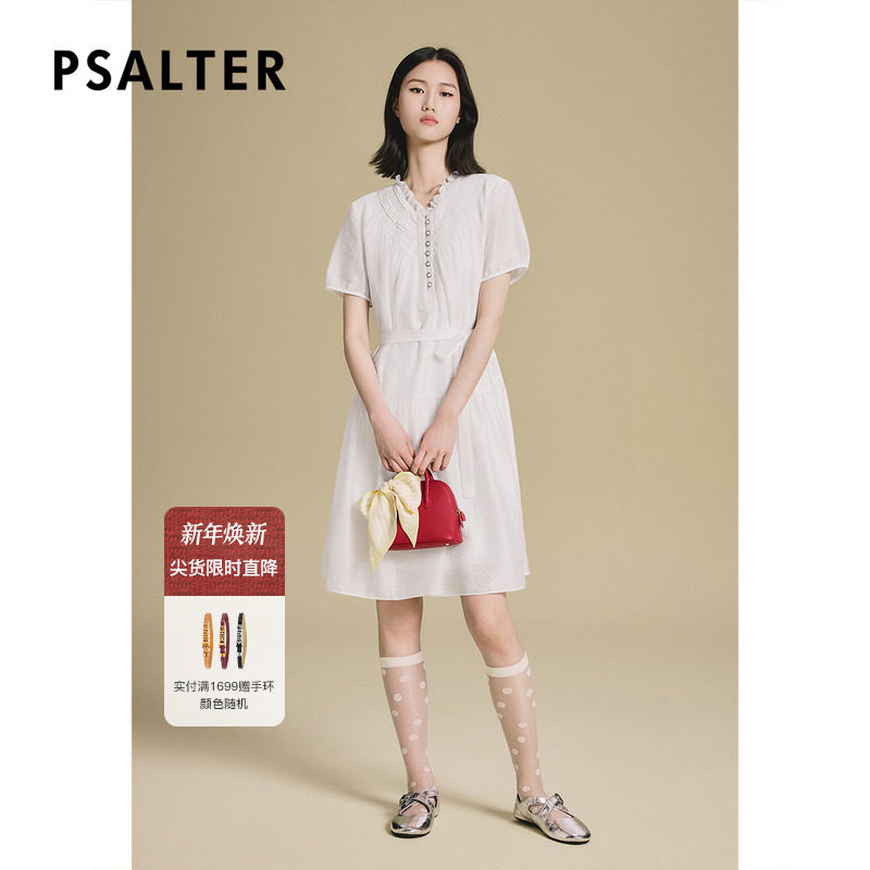 诗篇专选法式绣花木耳领系带收腰莱赛尔连衣裙2025夏季新款