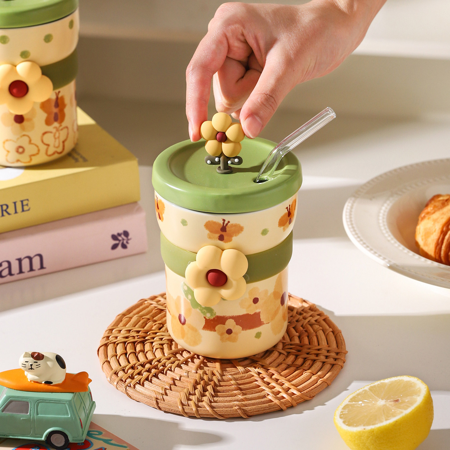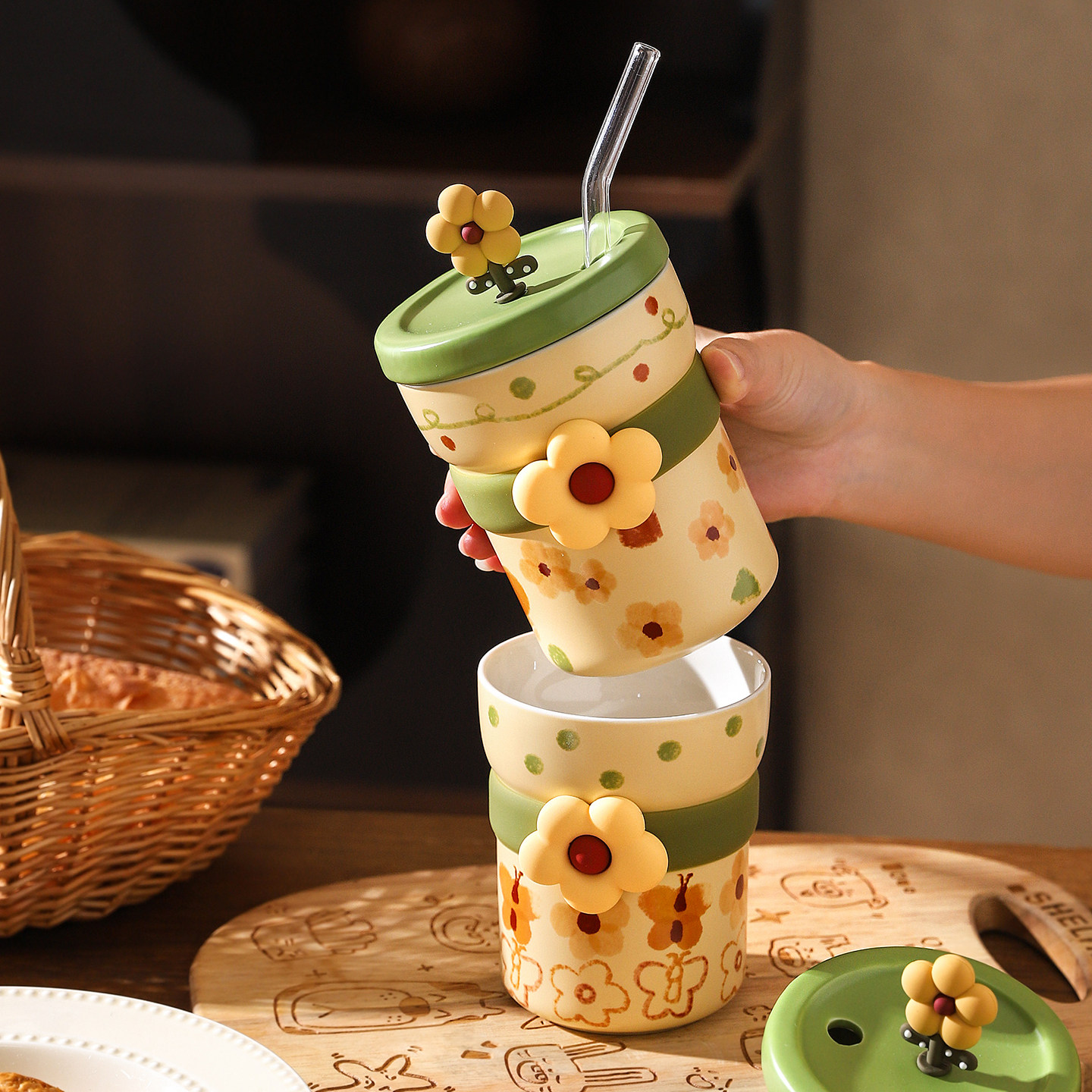 舍里可爱陶瓷马克杯家用办公室喝水杯创意随手杯吸管杯闺蜜对杯