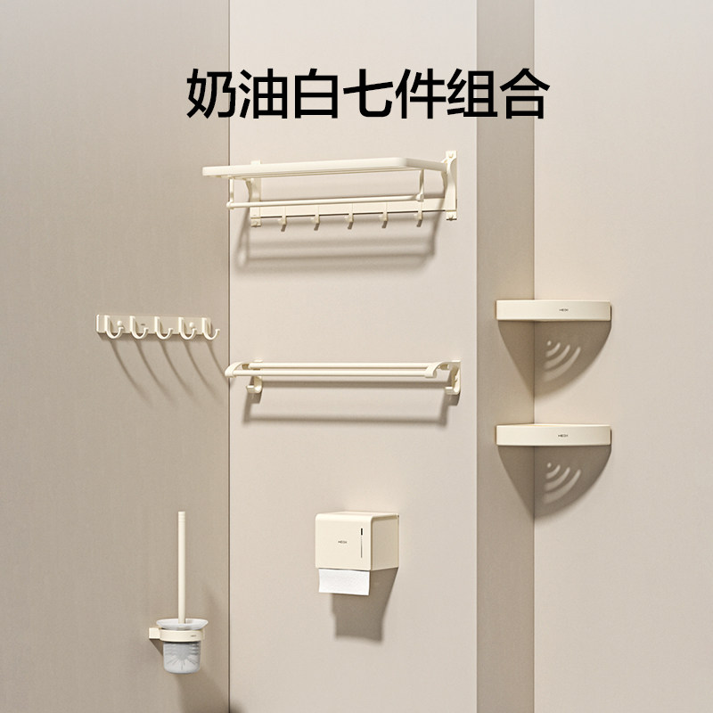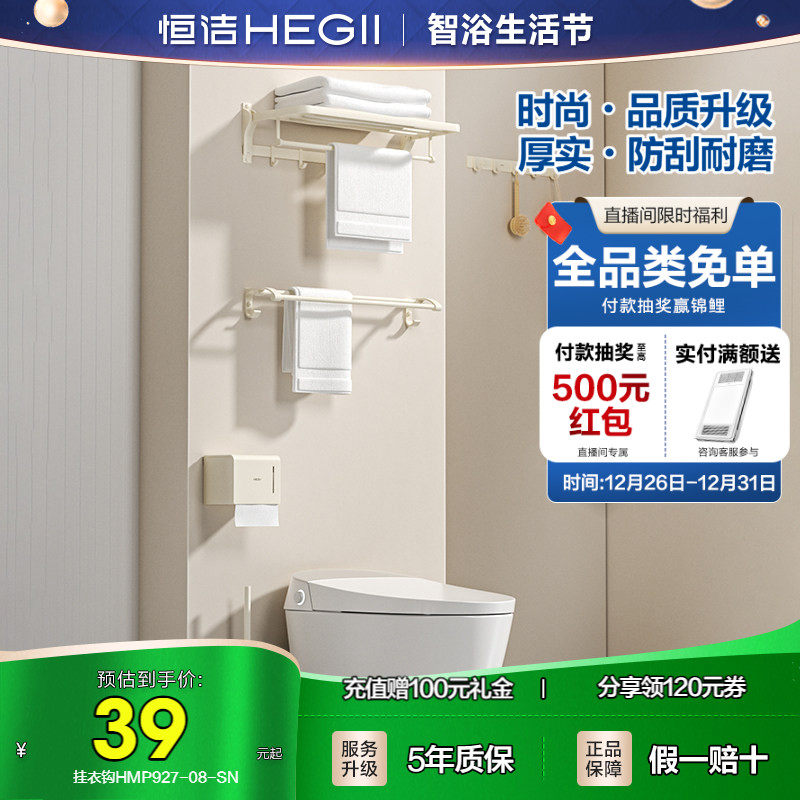 恒洁卫浴置物架浴巾架毛巾架挂钩浴室挂件套装厕所卫生间折叠五金