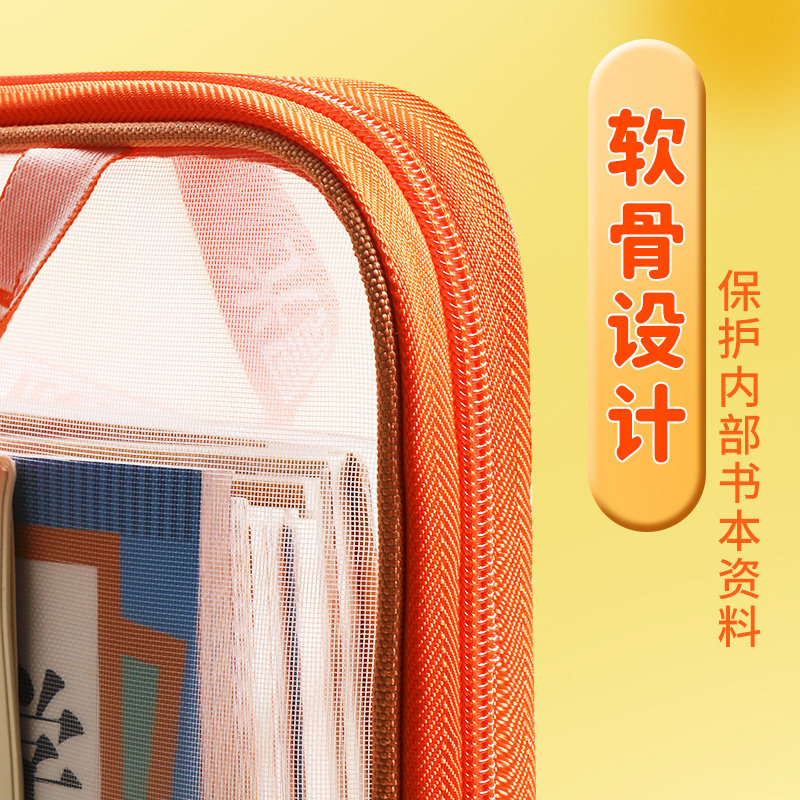 L型学科目分类袋透明网纱文件袋拉链大开口学生手提拎书袋考试用