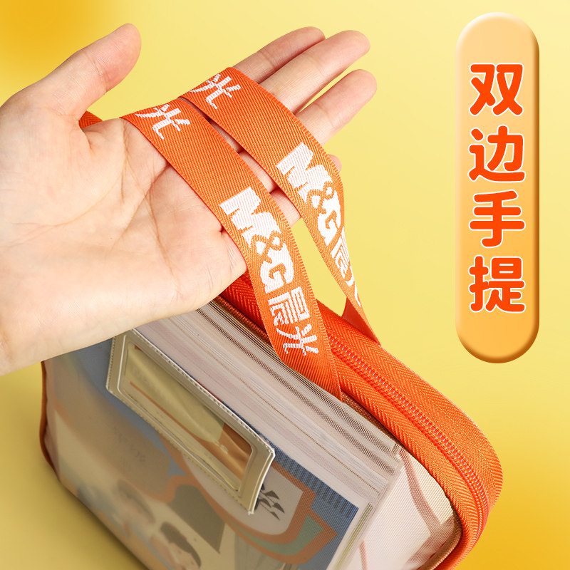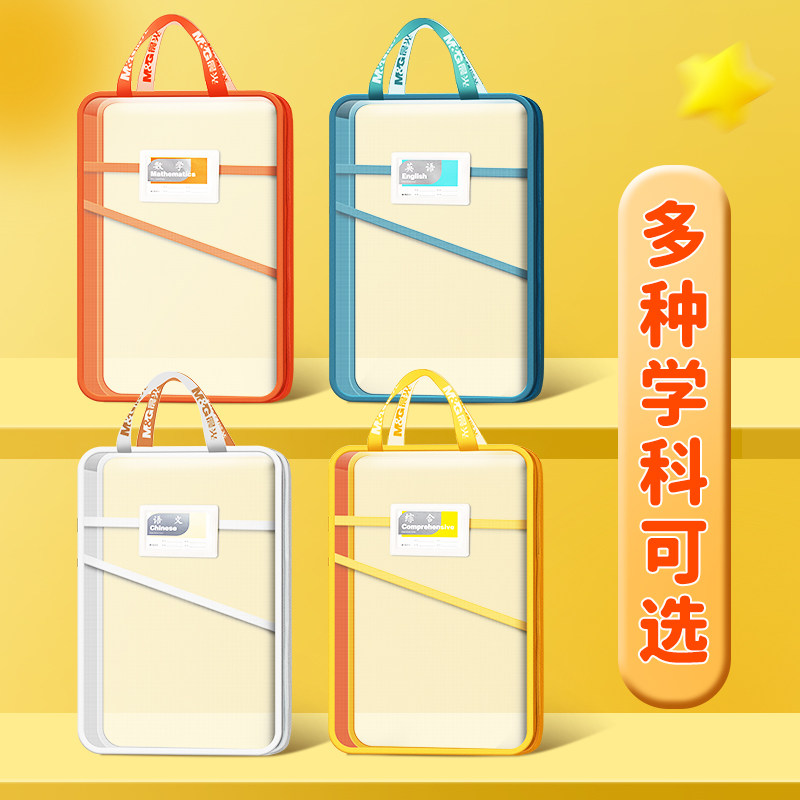 晨光L型学科科目分类袋L型大开口小学生手提袋立体网纱文件袋拎书袋书本收纳袋一年级文具作业袋初中生科目袋