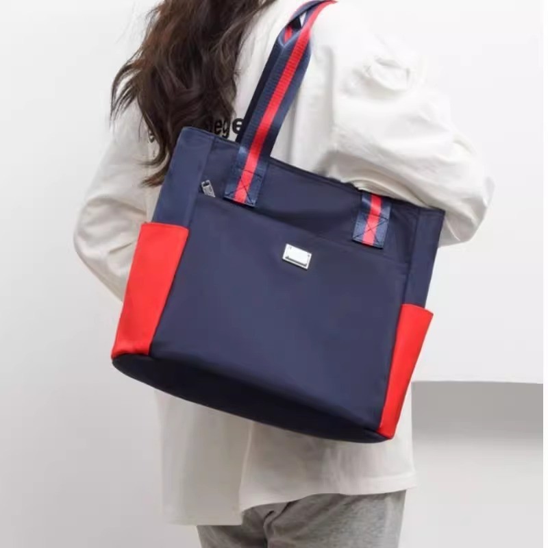 简约大容量尼防水龙通勤手提包新款多层托特包单肩牛津布旅行女包