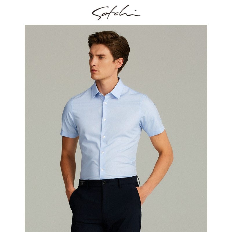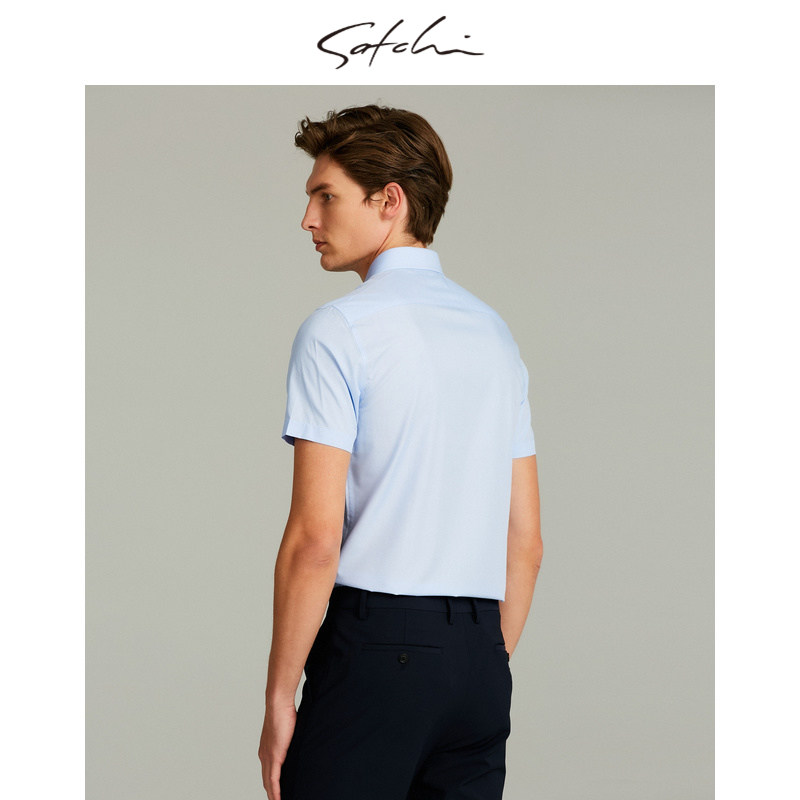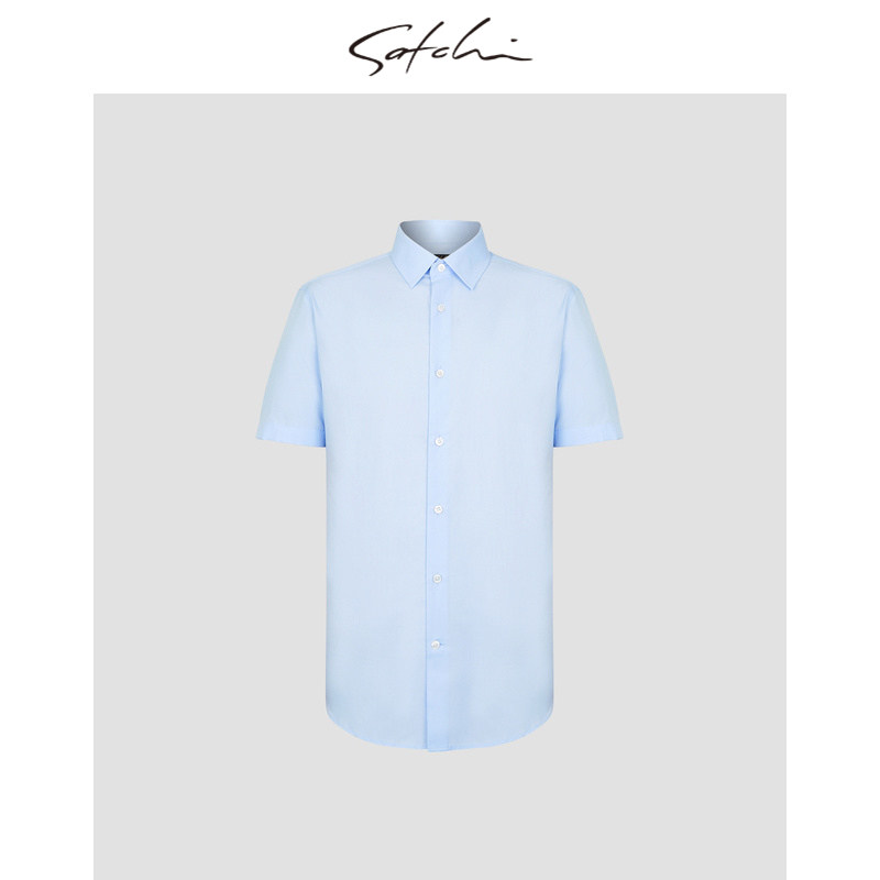 SATCHI沙驰男装商场同款男士短袖衬衫桑蚕丝衬衣88SCA8212069