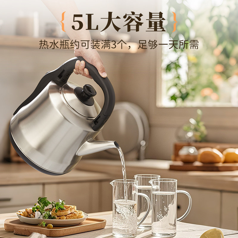 志高电热烧水壶家用304不锈钢5L大容量商用开水壶热水壶自动断电