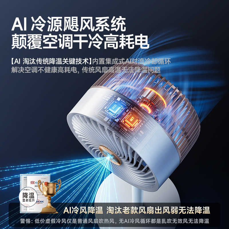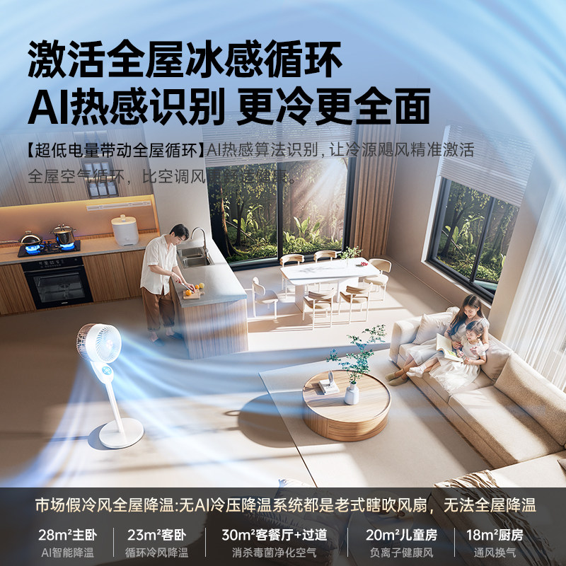 空气循环扇家用静音2025新款大风力立体式电风扇智能AI遥控落地扇