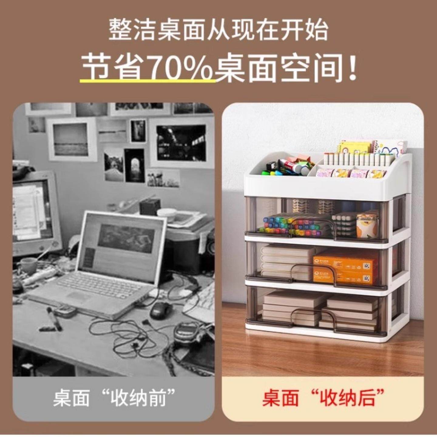 抽屉式桌面收纳盒办公室书桌多层储物柜文件文具宿舍桌上置物架子