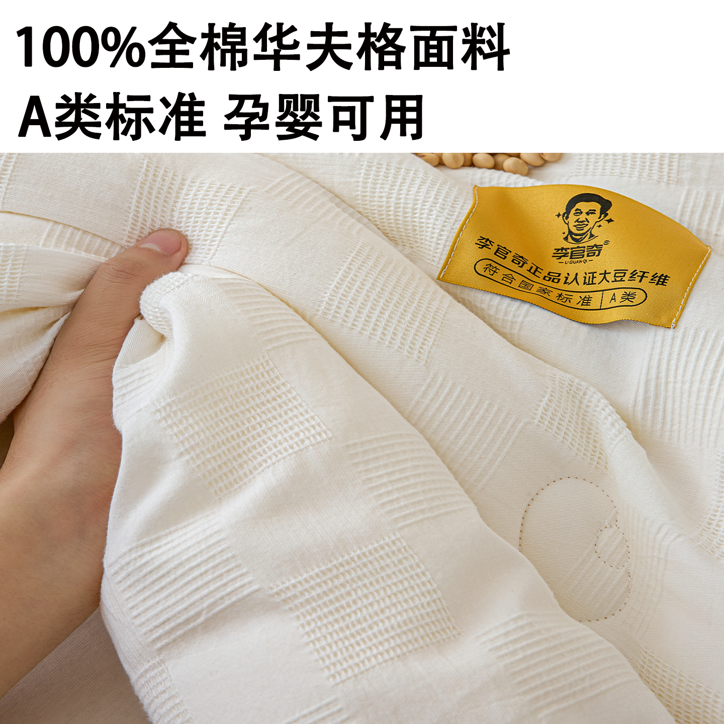 全棉母婴A类李官奇55%大豆被纯棉华夫格春秋被子单人棉被芯空调被