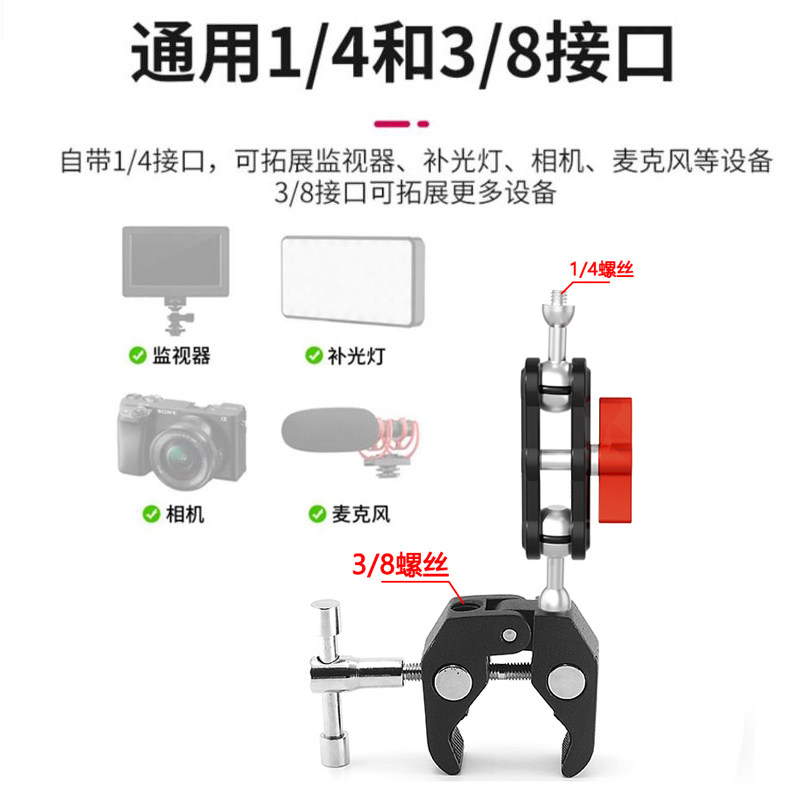 铝合金豌豆夹17mm球头万向魔术手臂怪手支架大力夹蟹钳夹摄影配件