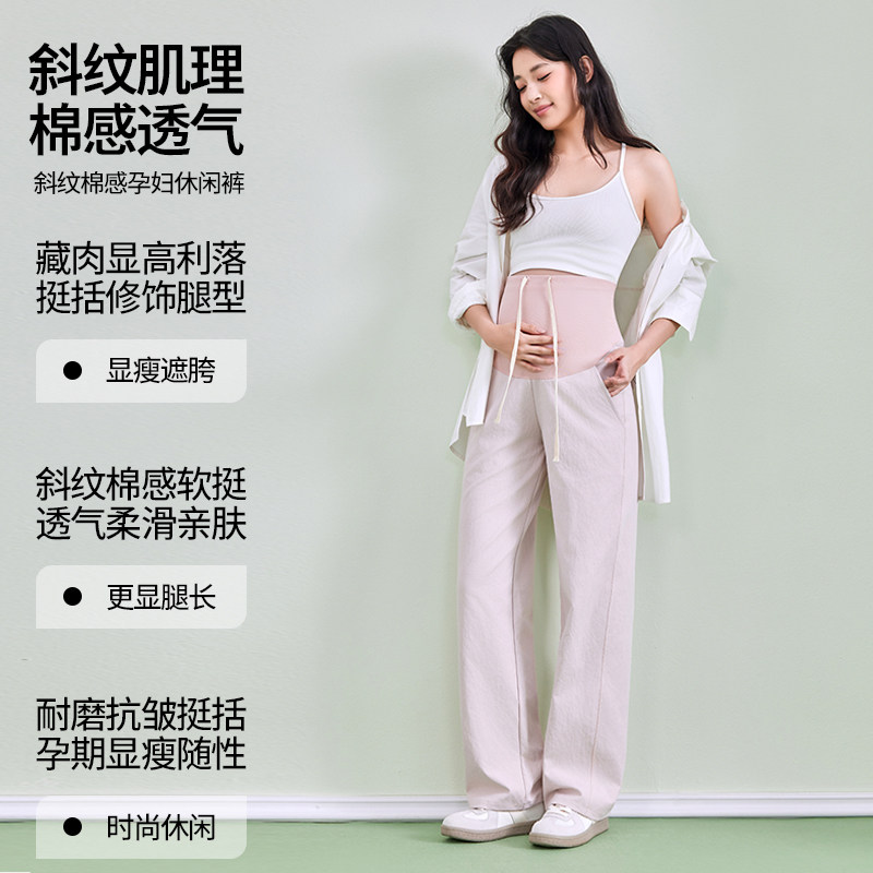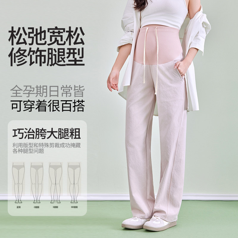婧麒孕妇裤夏薄款小个子外穿不勒肚子直筒阔腿裤托腹休闲裤子春装
