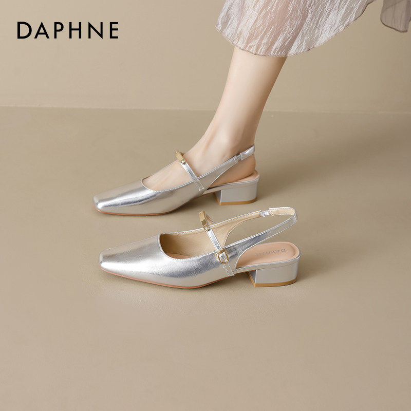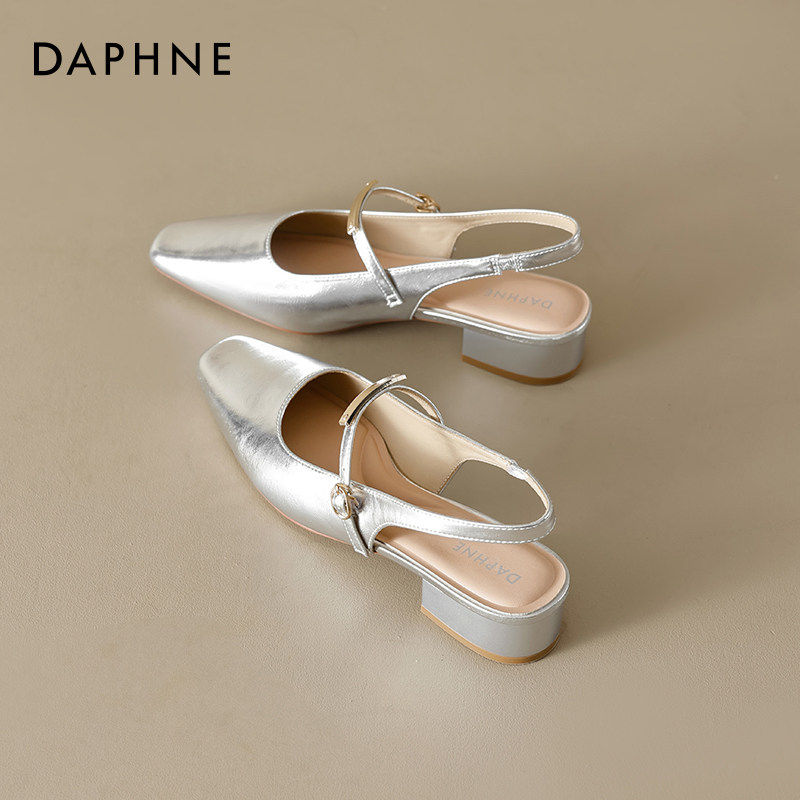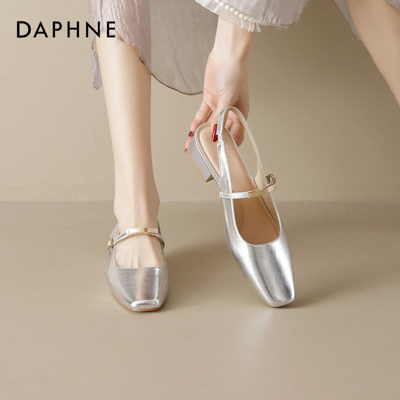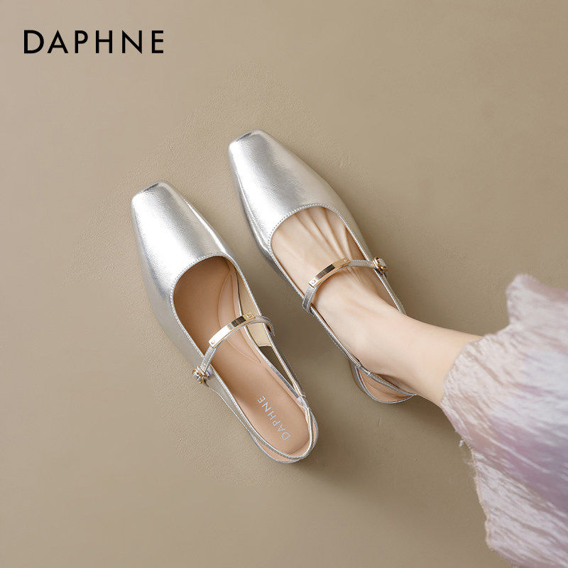 达芙妮早春漂亮单鞋女2026新款法式尖头气质玛丽珍鞋银色芭蕾凉鞋