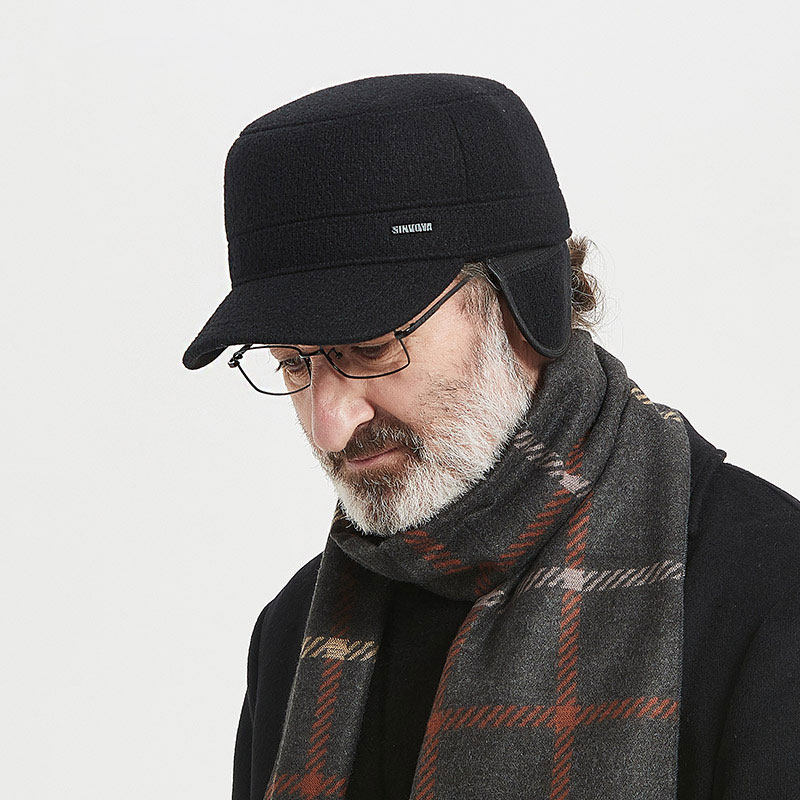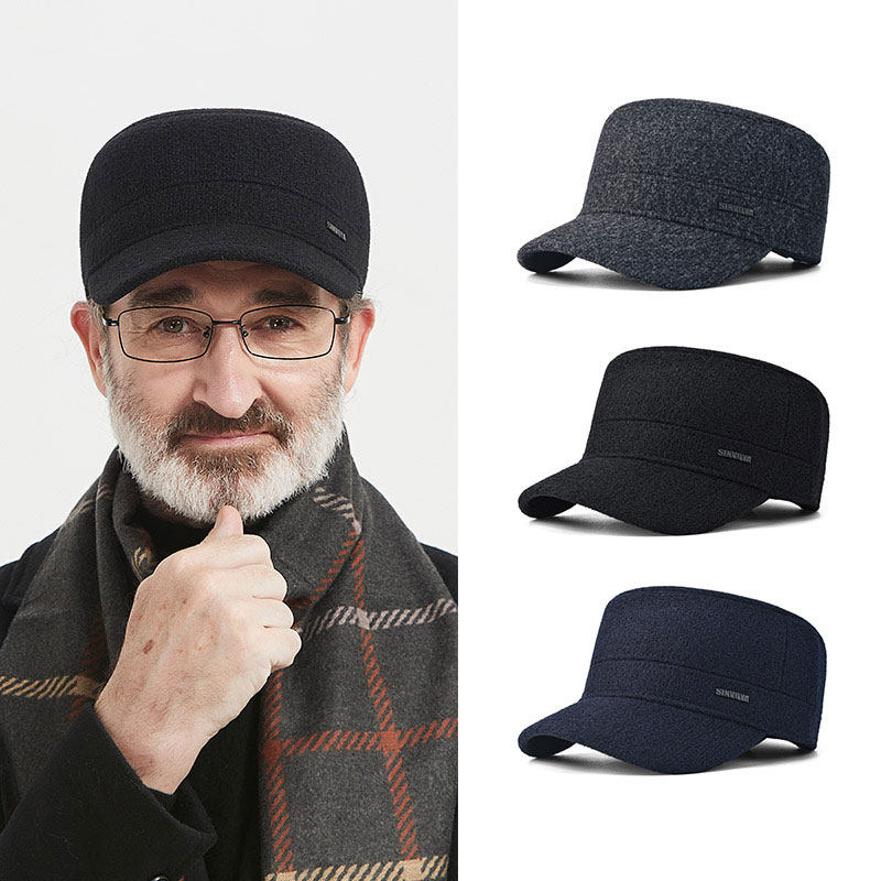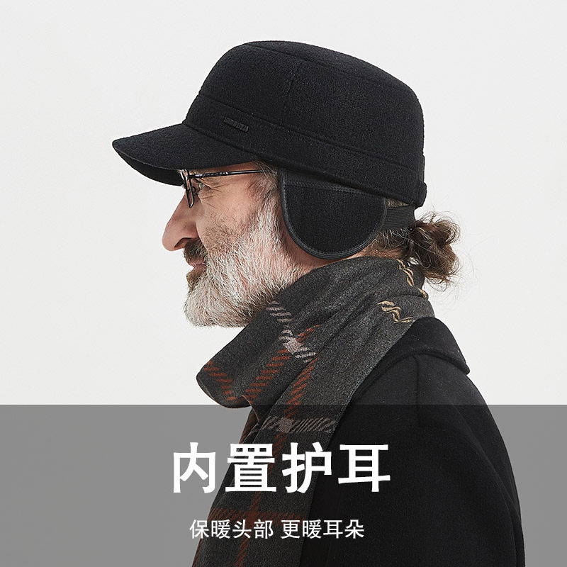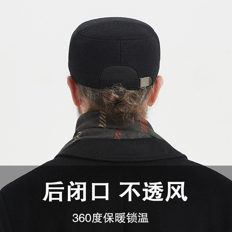 老人帽子男冬全封口平顶帽爸爸鸭舌帽秋冬保暖老年人爷爷护耳冬帽