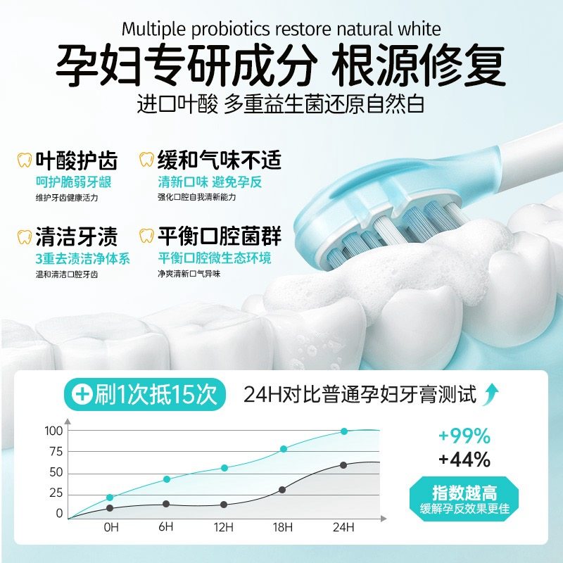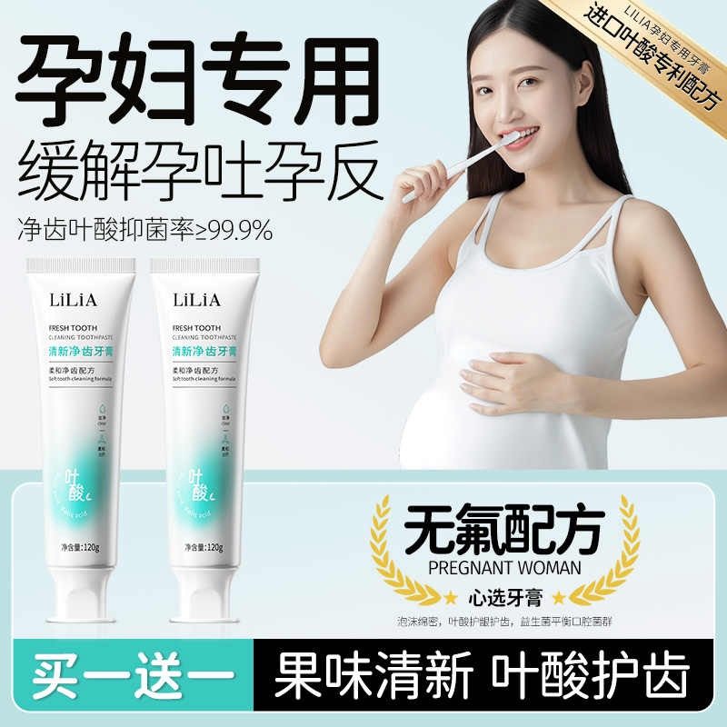 牙膏益生菌叶酸准孕妇孕吐去黄去口臭专用不含氟正品无氟孕期产妇