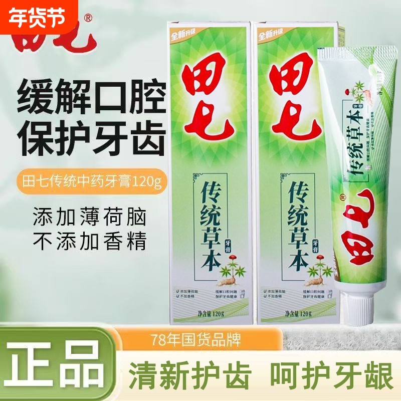 120g田七牙膏家用清火去火口气清新中药牙膏薄荷味香型家庭装正品