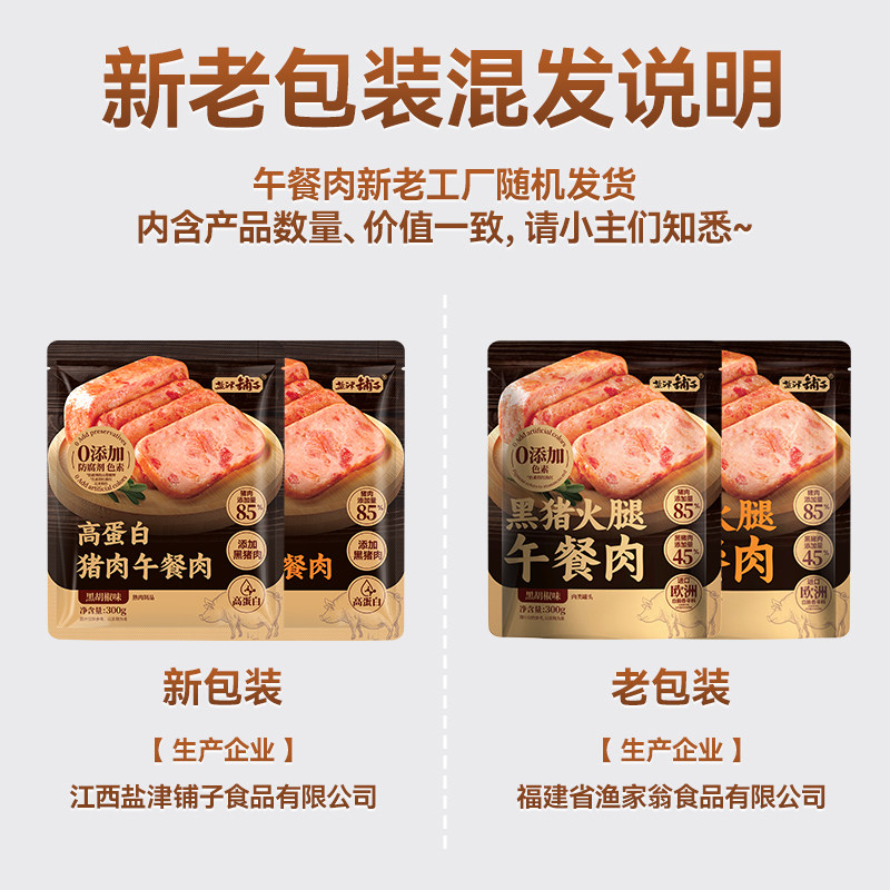盐津铺子午餐肉火腿单独包装肠早餐专用猪肉休闲年货特色黑猪
