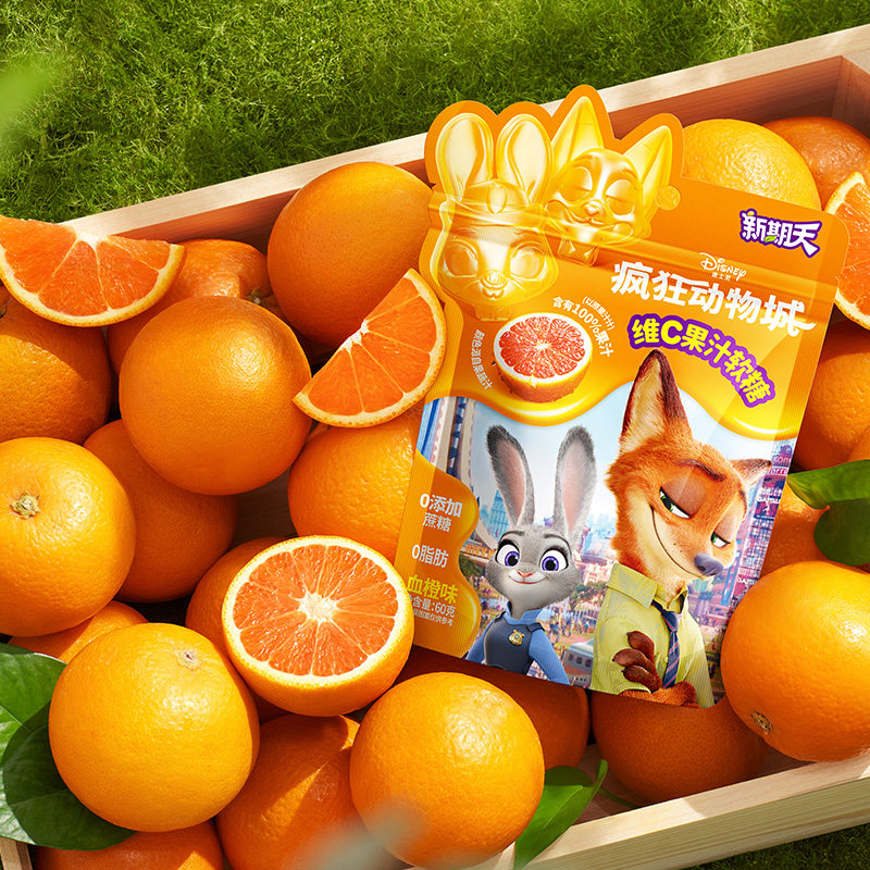 新期天疯狂动物城联名维C果汁软糖棒棒糖血橙味60g