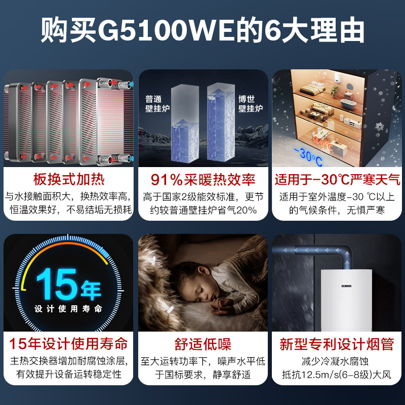 Bosch博世博乐G5100WE天燃气壁挂炉采暖24kw热水器地暖暖气片 47