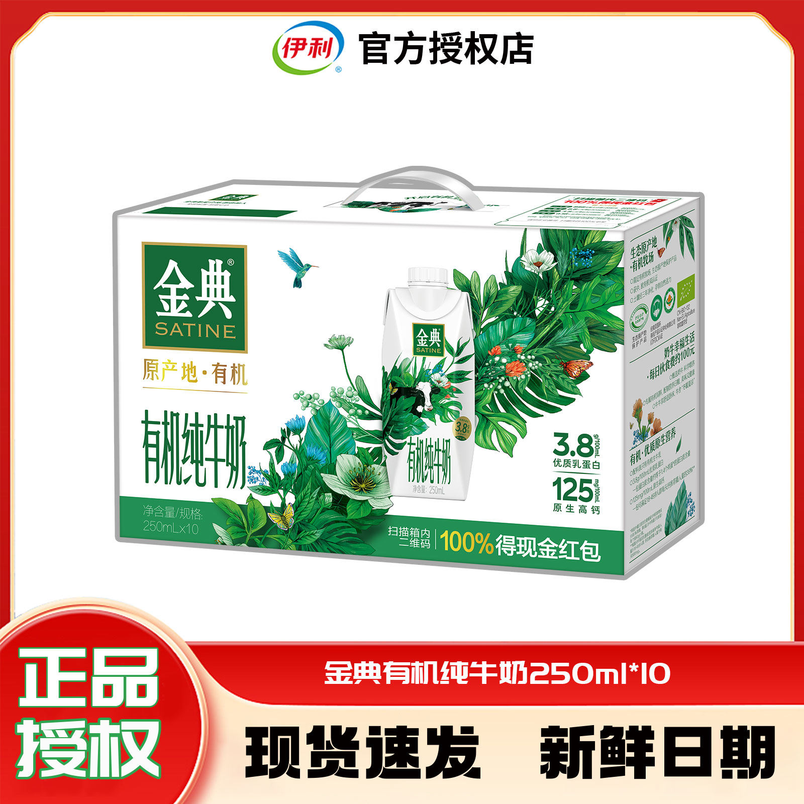 伊利金典【有机】纯牛奶整箱3.6g蛋白中欧双认证学生早餐正品礼盒