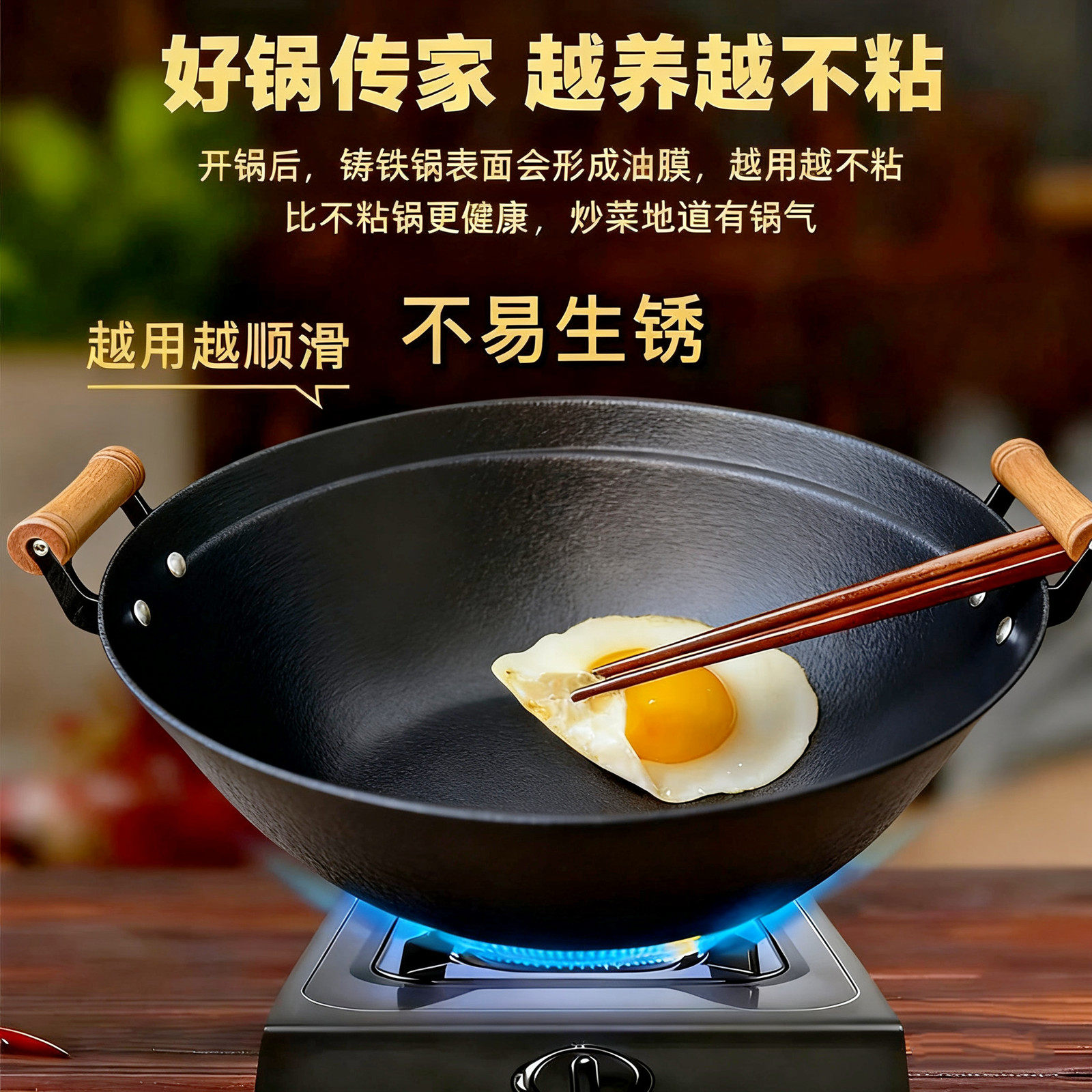 正宗章丘手工传统老式大铸铁锅炒锅家用加深加厚无涂层生铁炒菜锅