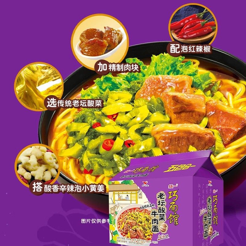 统一方便面袋装整箱红烧老坛酸菜牛肉面速食泡面泡椒牛肉藤椒连包