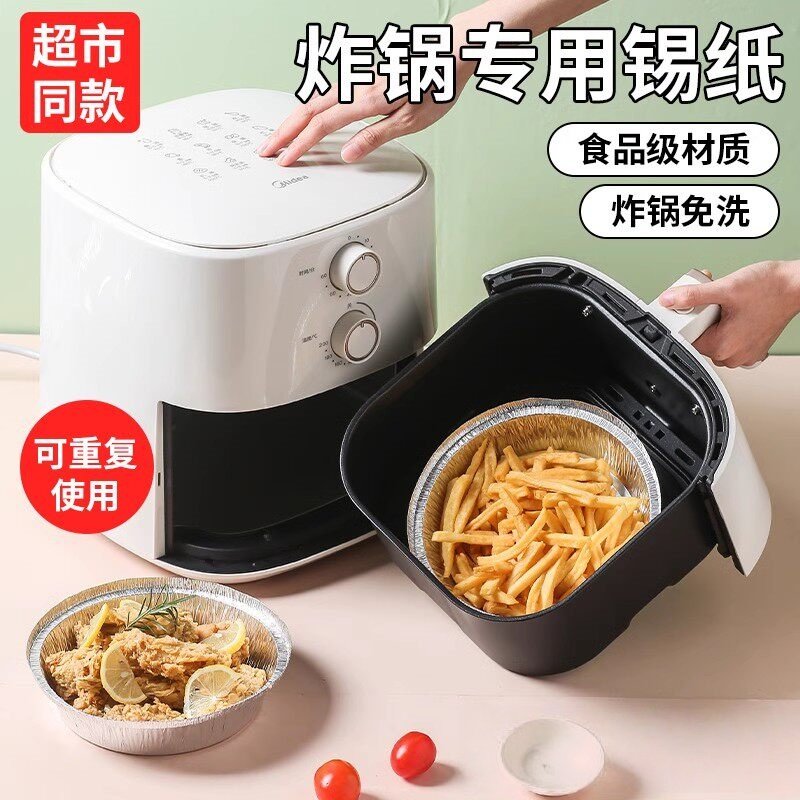 空气炸锅专用加厚锡纸盘盒烧烤箱烘焙锡箔碗家用锡纸盒食品级圆形