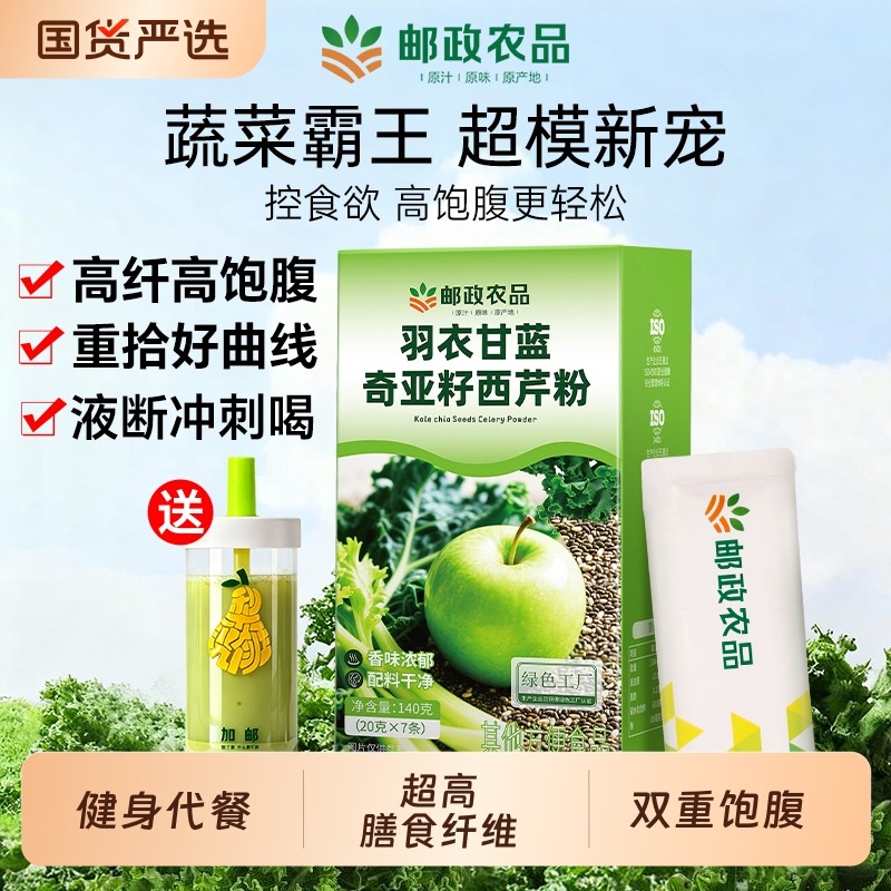 邮政羽衣甘蓝奇亚籽西芹粉代餐饱腹食品早餐女膳食纤维蔬菜粉豆浆