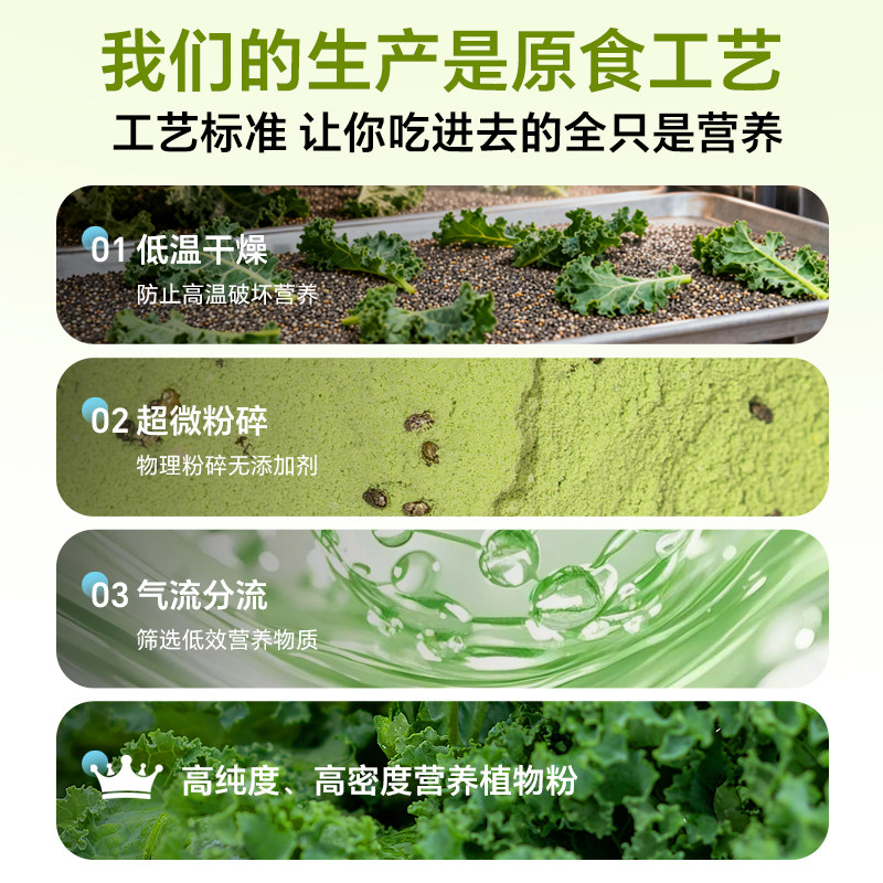 ohmyfood纯冻干羽衣甘蓝粉膳食纤维健身代餐饱腹食品青汁果蔬菜粉