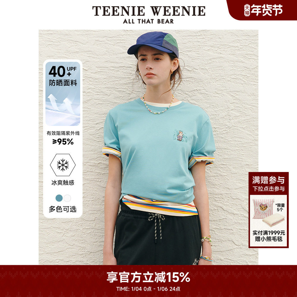 【凉感防晒】TeenieWeenie小熊奥莱夏装白色休闲短袖T恤上衣