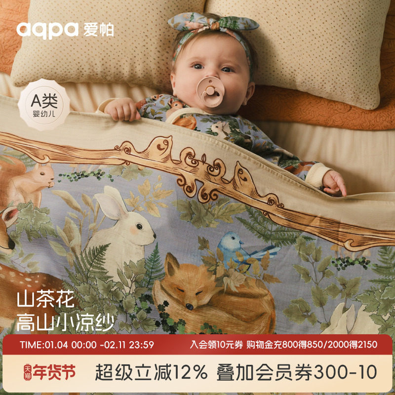 aqpa爱帕山茶花抗菌婴儿盖毯四季宝宝毯子推车防风毯儿童午睡洋气