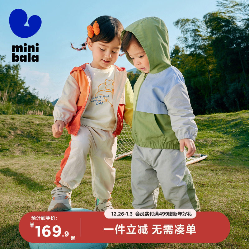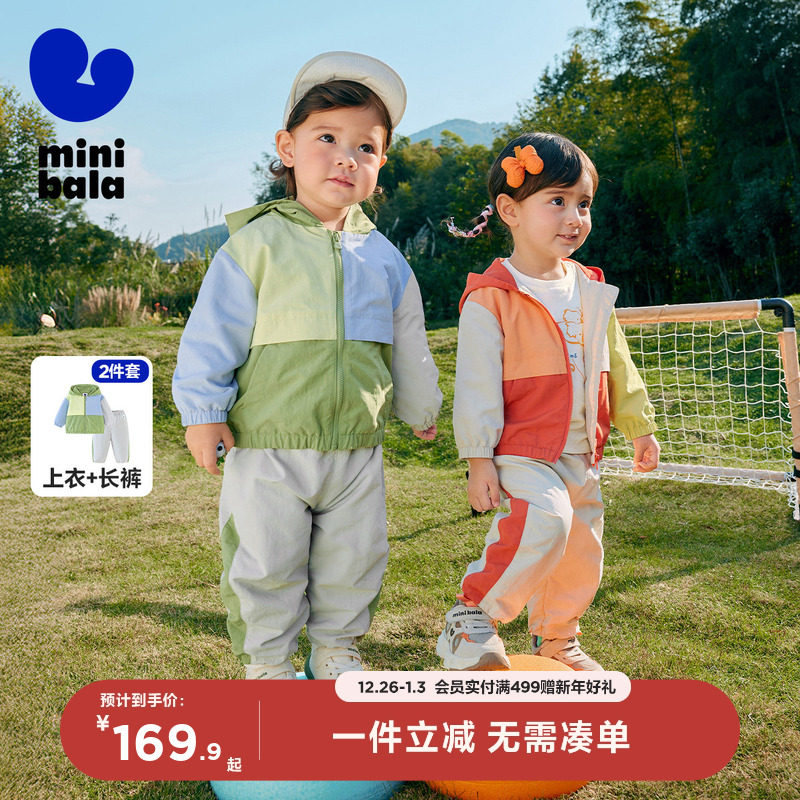 迷你巴拉巴拉长袖套装男女童户外运动连帽外套长裤2025秋季新款