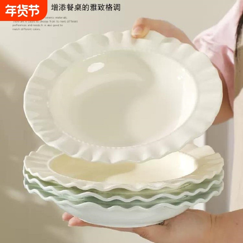 创意ins风高级感荷叶边陶瓷盘意面盘深盘西餐盘水果沙拉碗酸奶碗