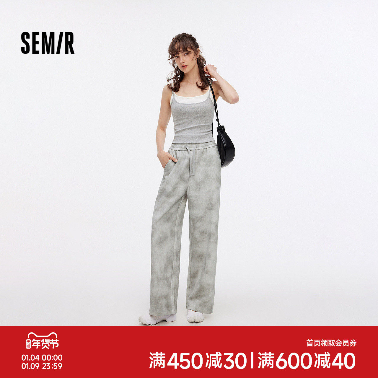 森马休闲裤女松弛感阔腿裤时尚慵懒风秋季街头宽松晕染脏脏裤流行
