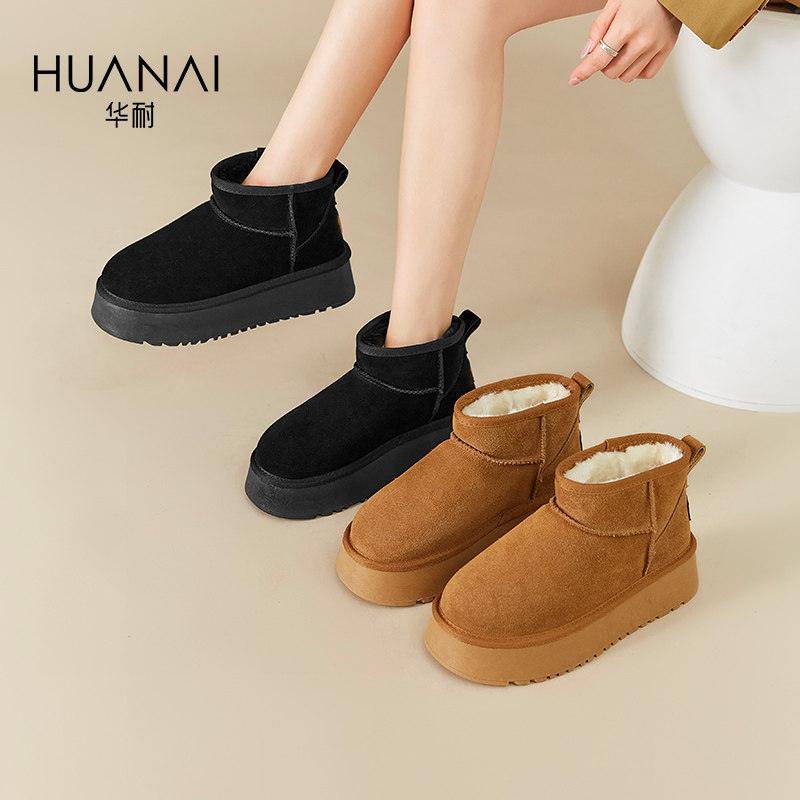 华耐厚底雪地靴小个子低帮2025秋冬加厚加绒棉靴废土风穿搭小短靴