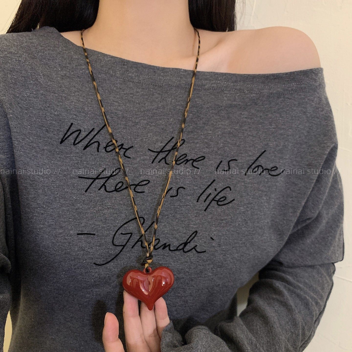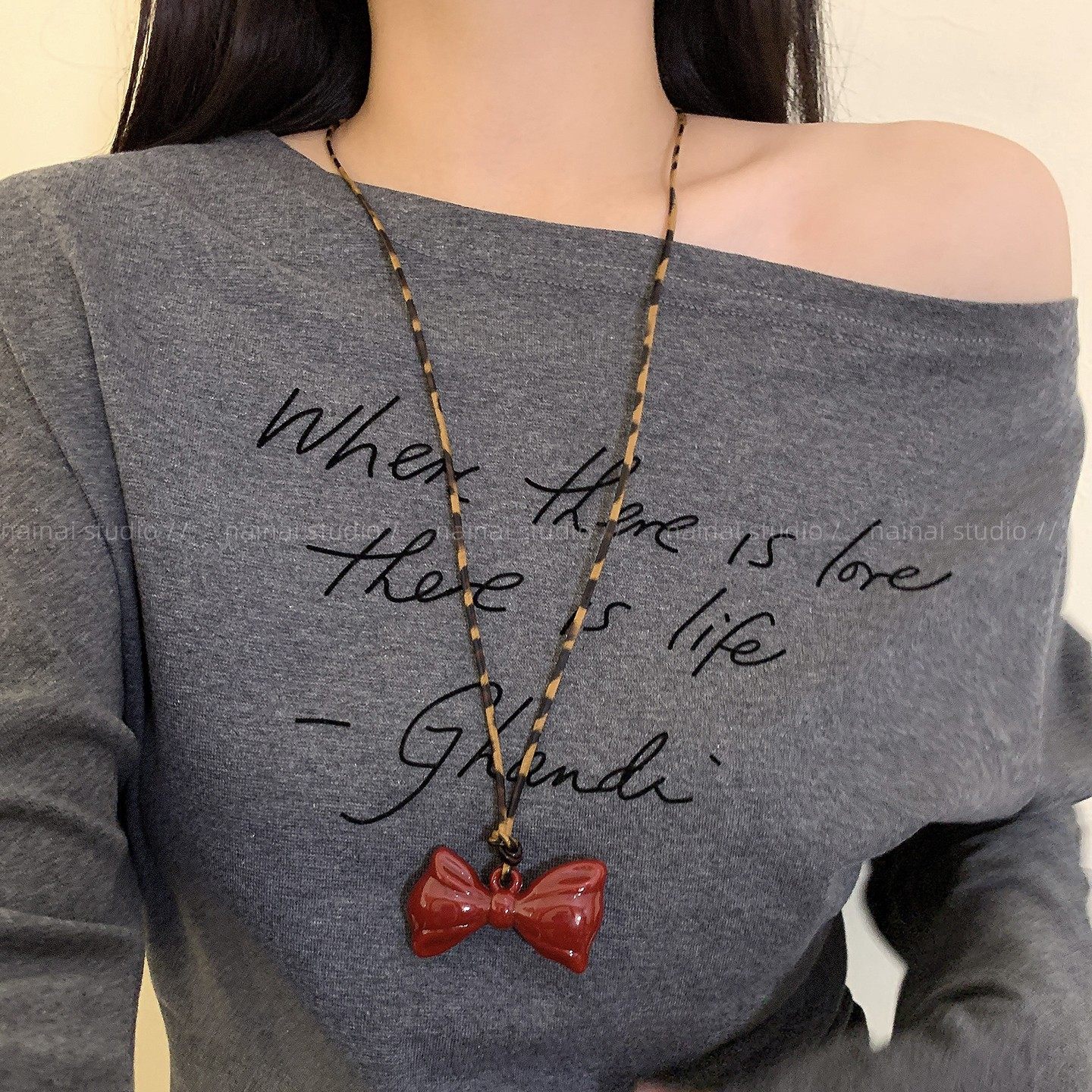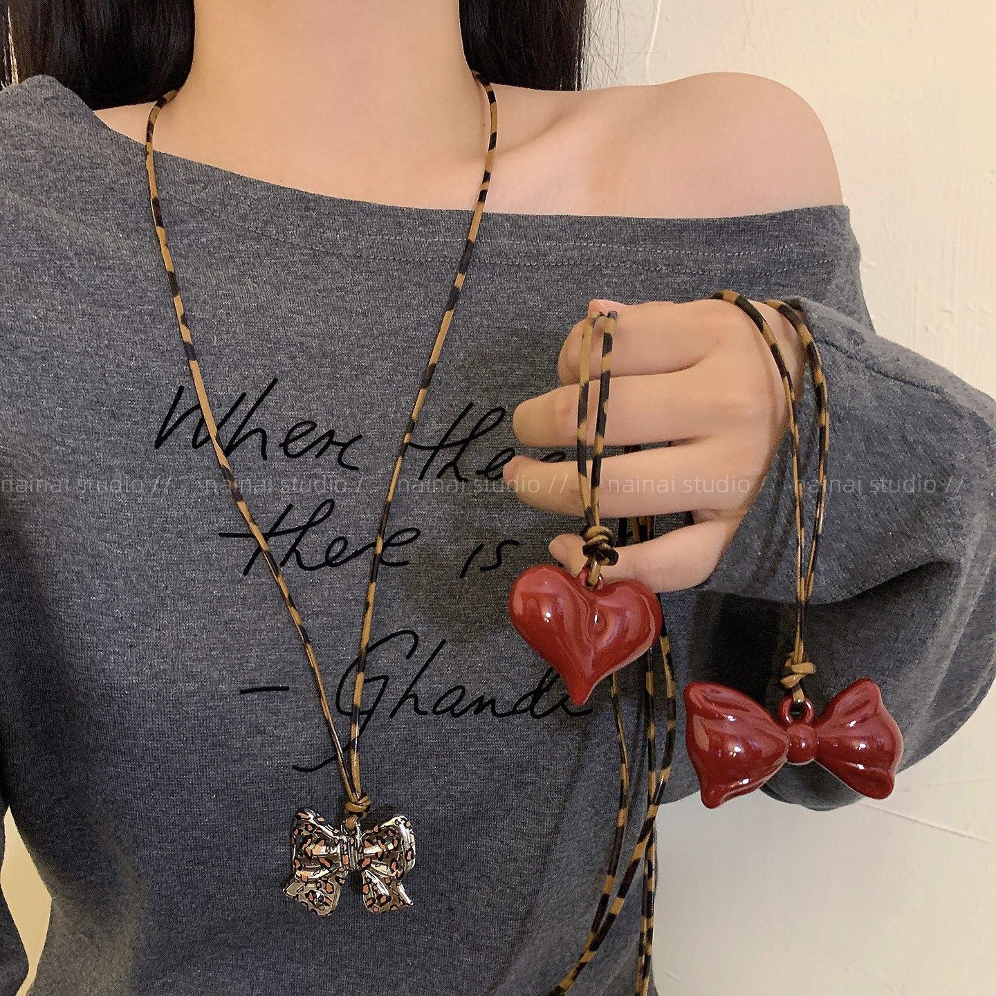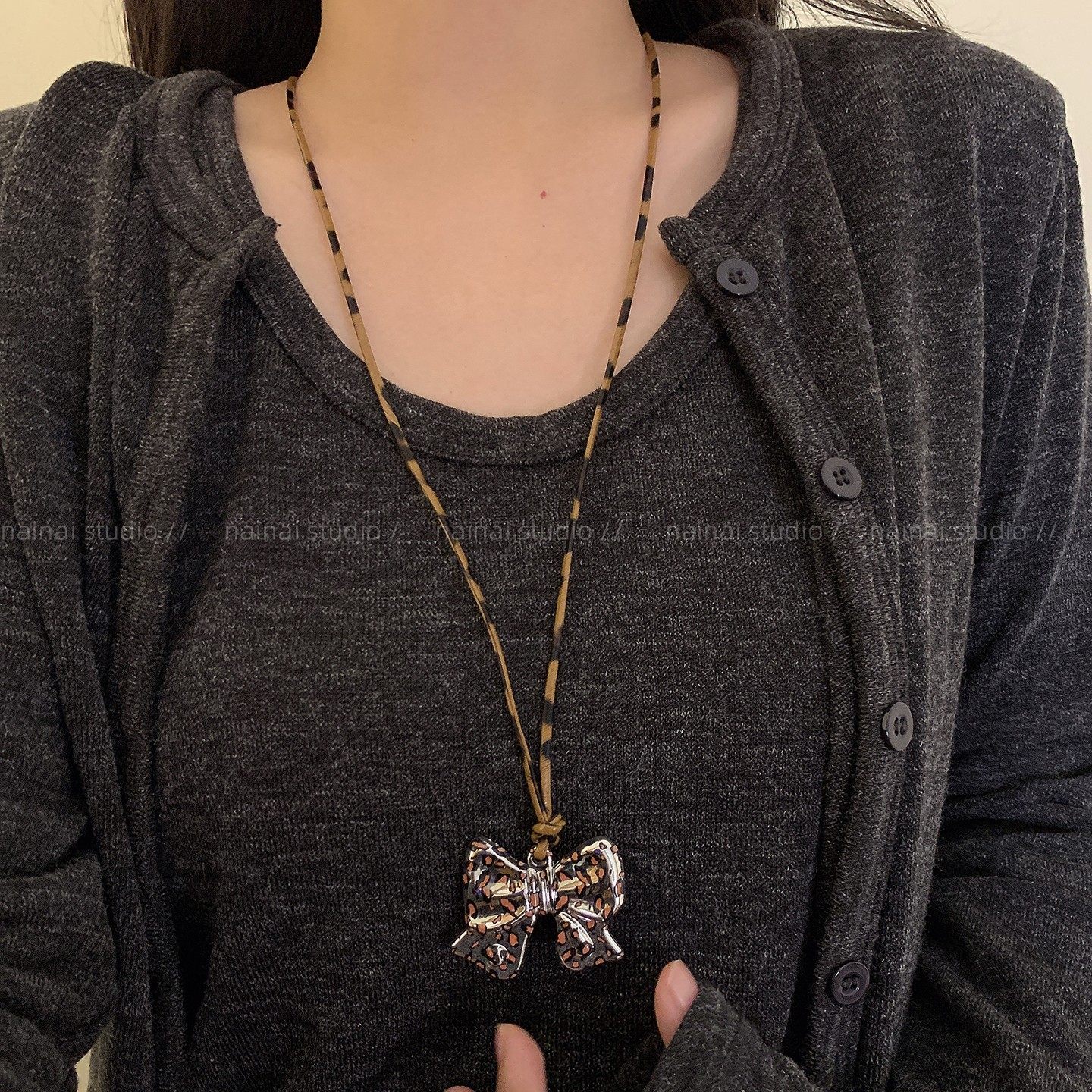 豹纹项链~蝴蝶结爱心y2k千禧酷辣妹毛衣链卫衣链长款配饰小众女秋