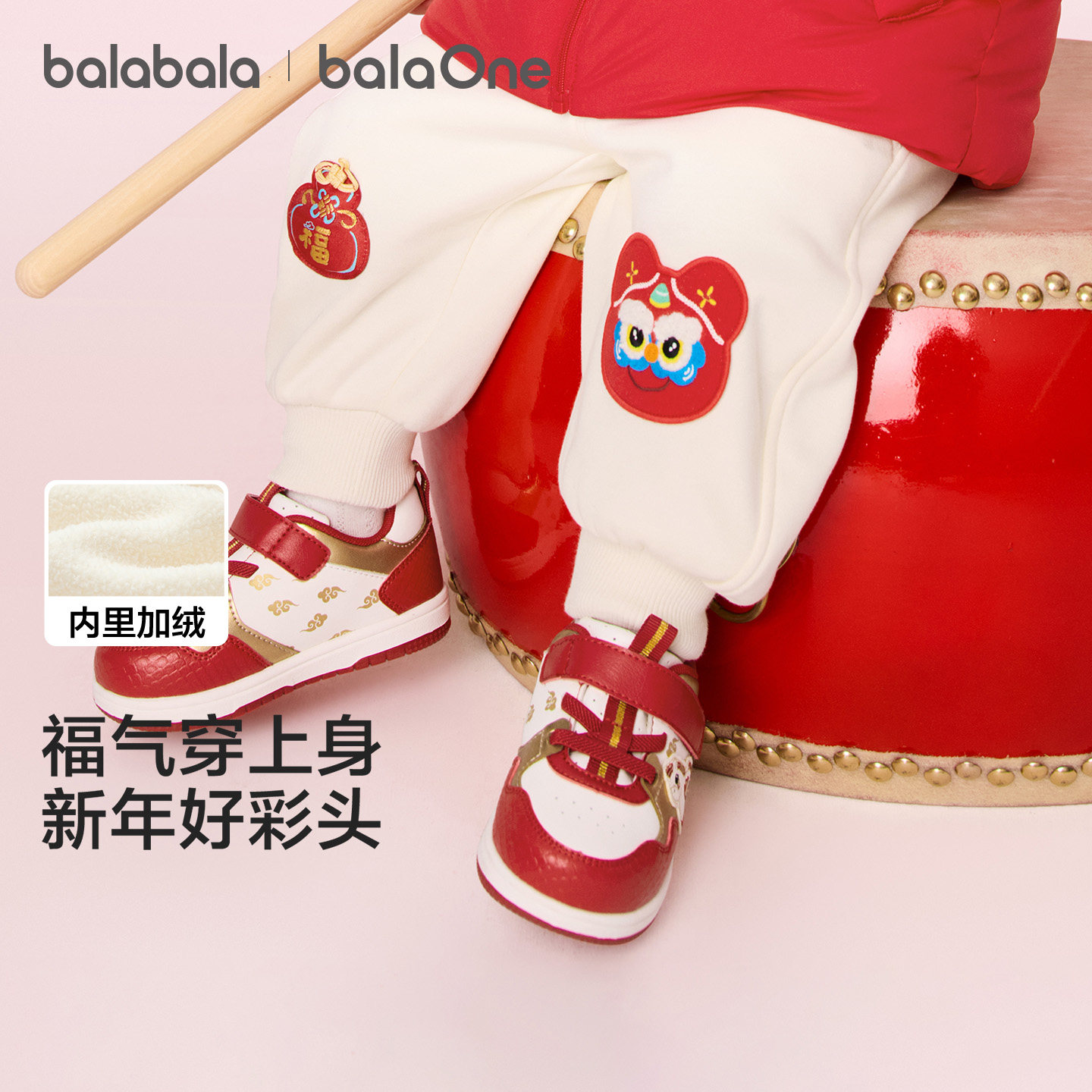 【胡可推荐】巴拉巴拉儿童加绒长裤新款拜年服宝宝裤子红