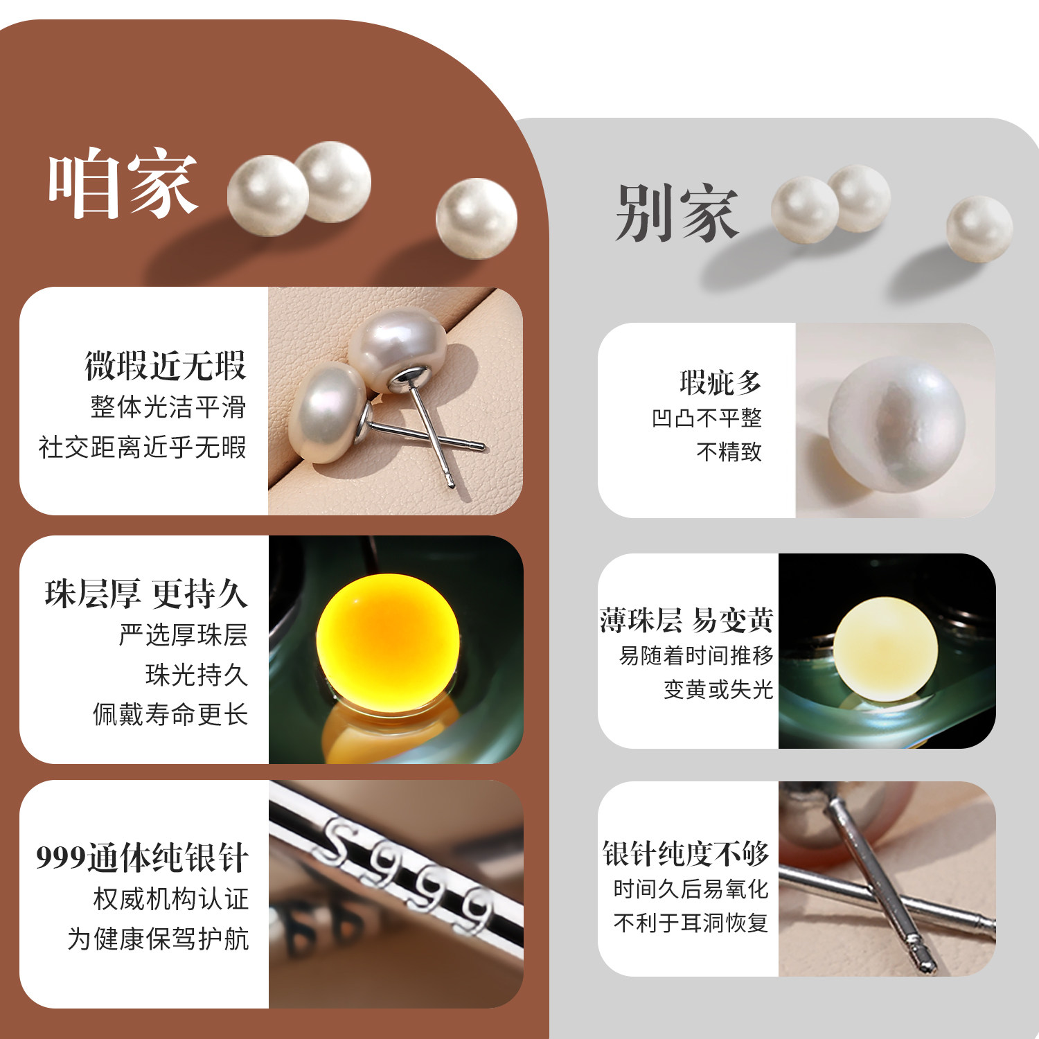 淡水真珍珠S999银针耳钉气质耳饰女耳环养耳洞2025年新款轻奢迷你