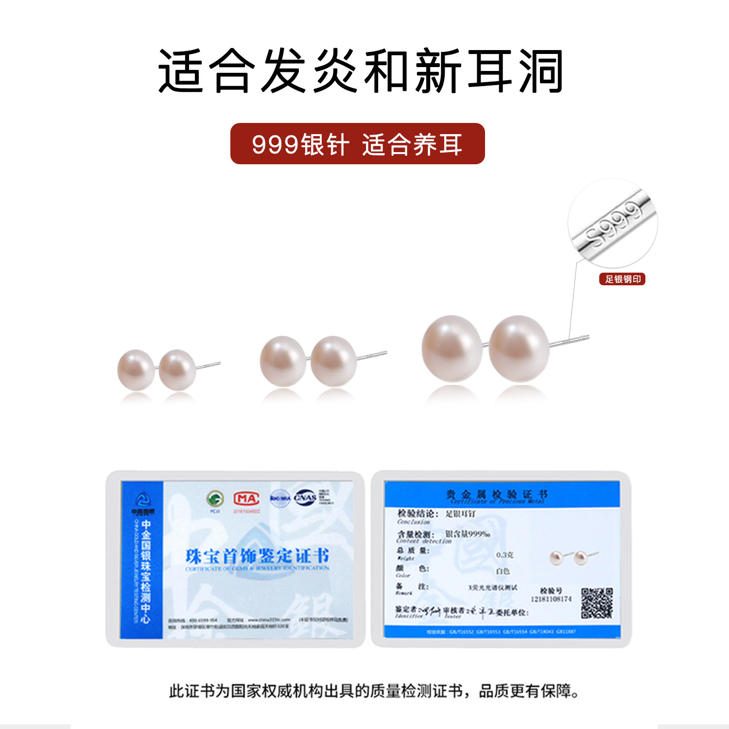 fever同款珍珠耳钉999纯银施家耳环2025新款爆款高级轻奢正圆耳饰