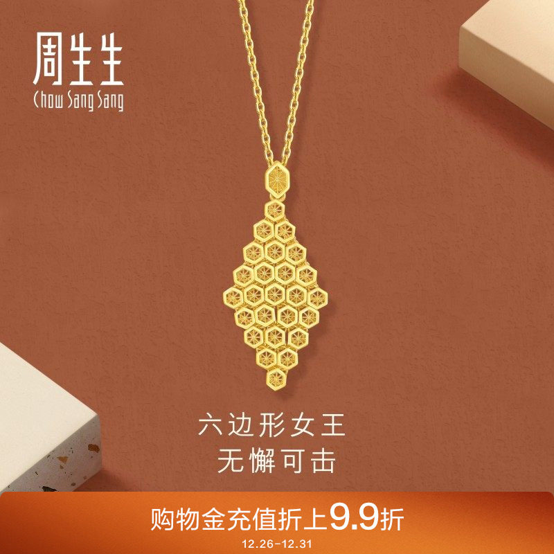 周生生珠宝永系列蜂巢爆闪吊坠镂空黄金足金挂坠94521P计价