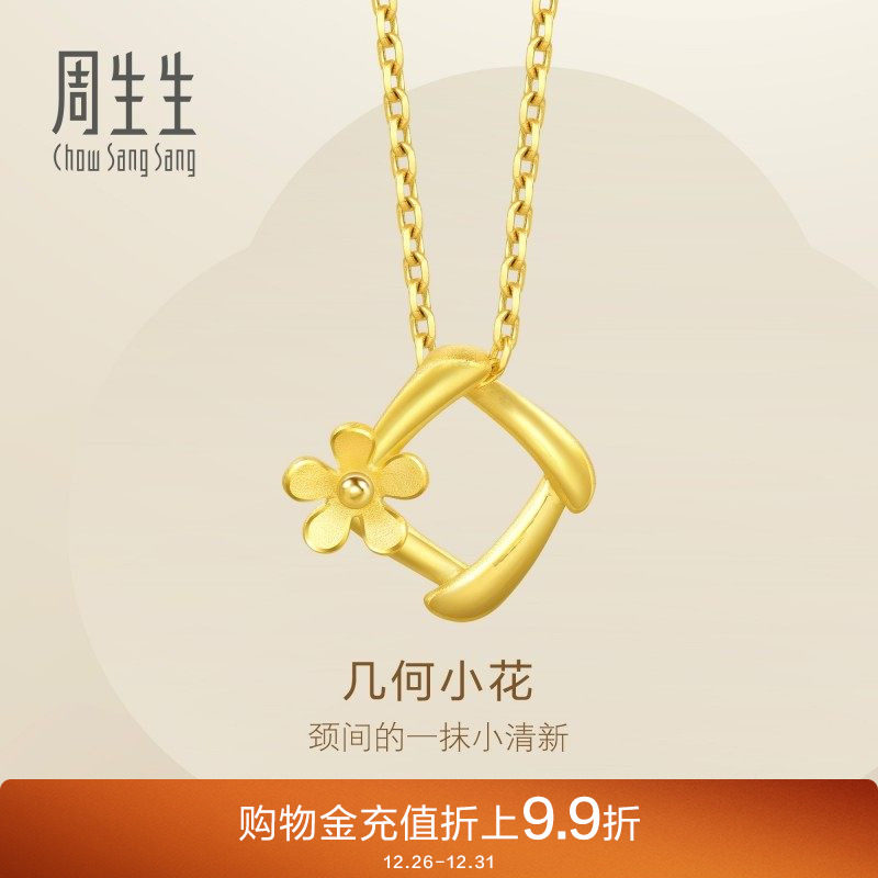 周生生足金花吊坠黄金几何挂坠女款金饰珠宝29132P计价
