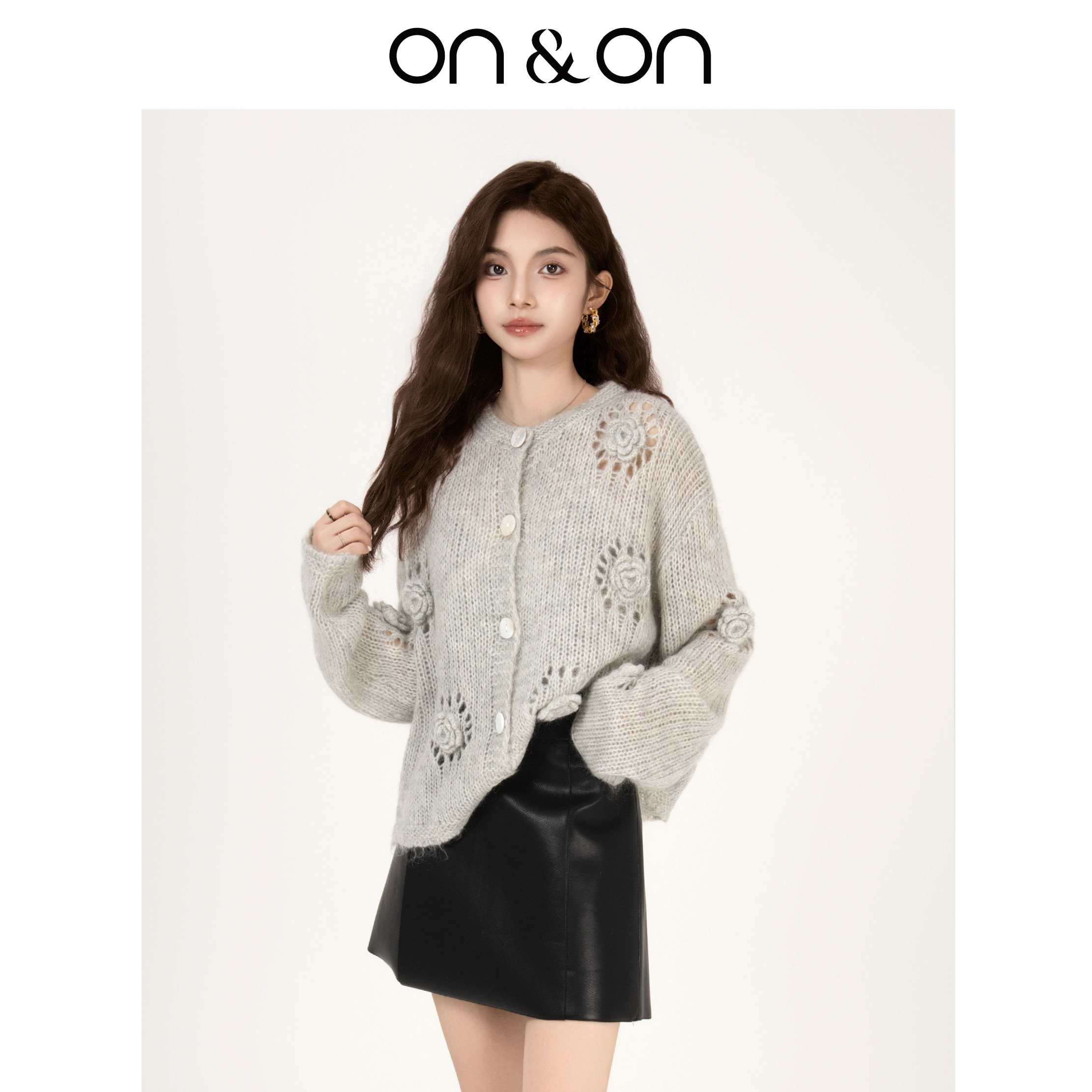 ON&ON/安乃安2025冬季新款韩系慵懒甜美镂空钩花立体花朵开衫女