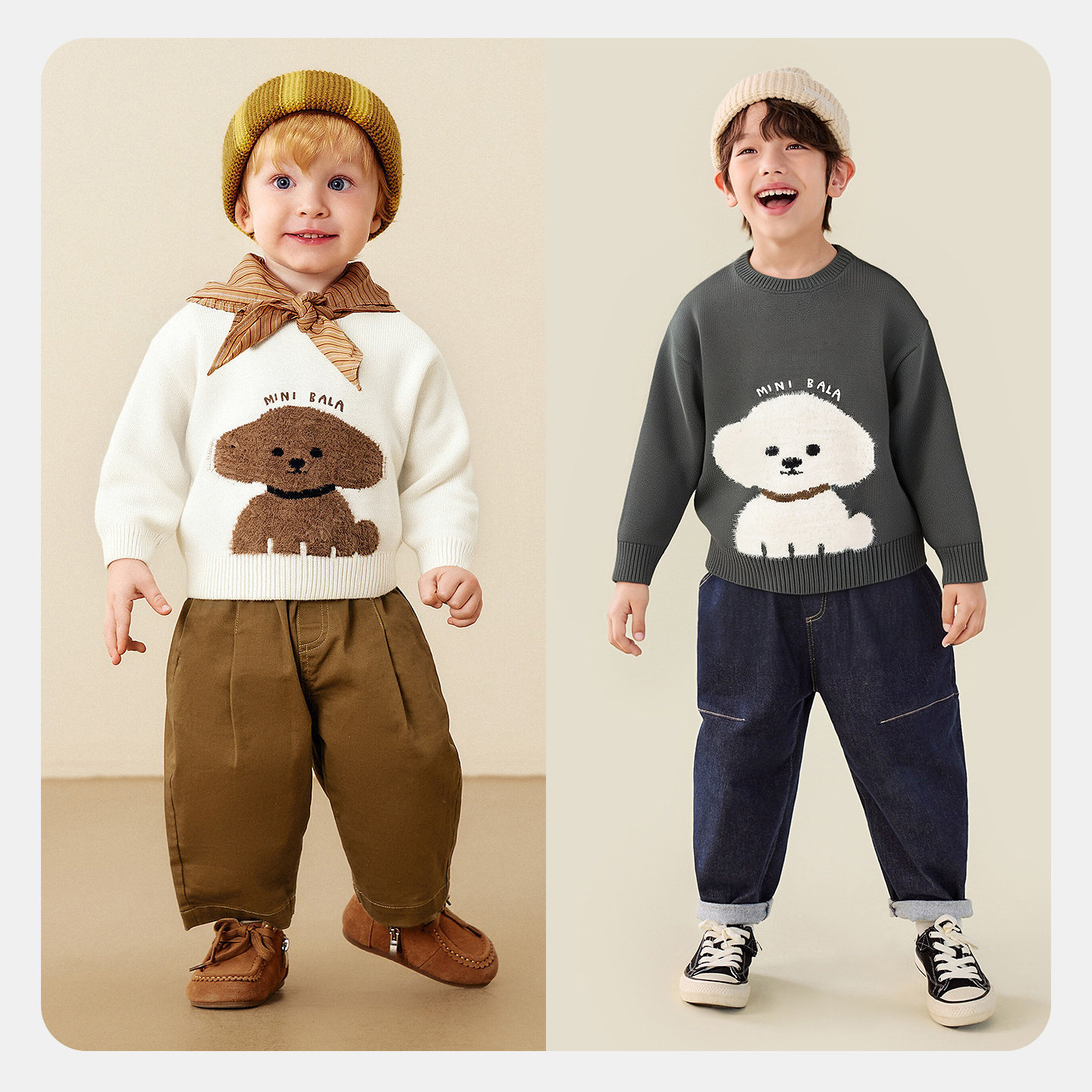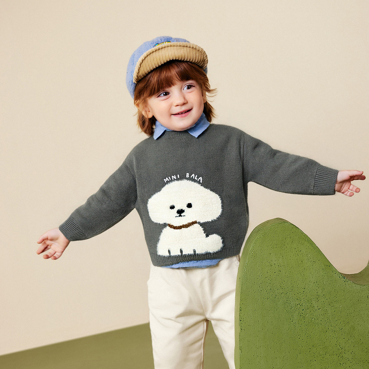 迷你巴拉男童女童毛衫春新品宝宝儿童亲肤长袖软毛衣保暖外套
