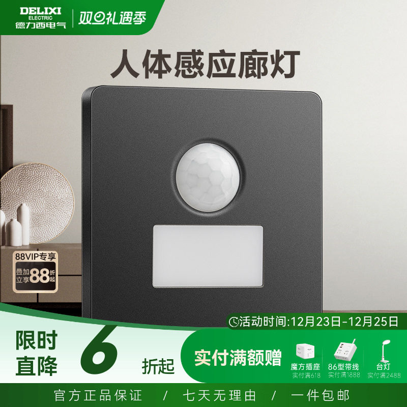 德力西开关插座人体感应地脚灯智能感应控制楼道走廊延时led夜灯