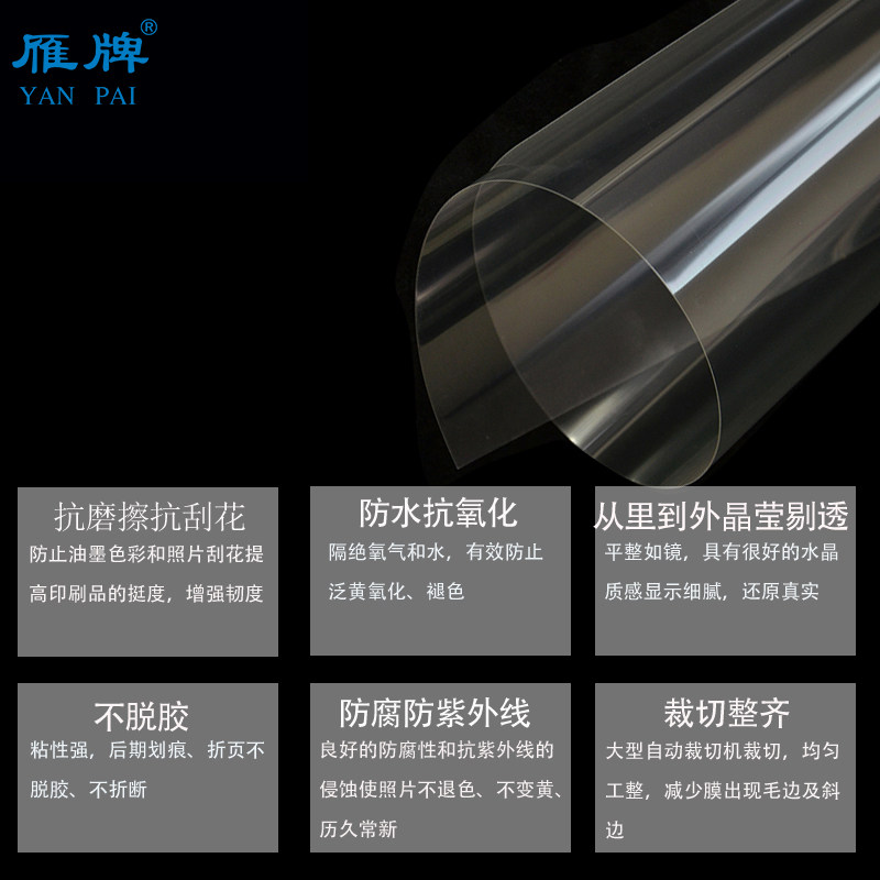 雁牌110热裱水晶膜PET25S水晶膜照片广告影楼后期热裱水晶膜无框画晶瓷画装饰画照片热裱透亮高光水晶膜